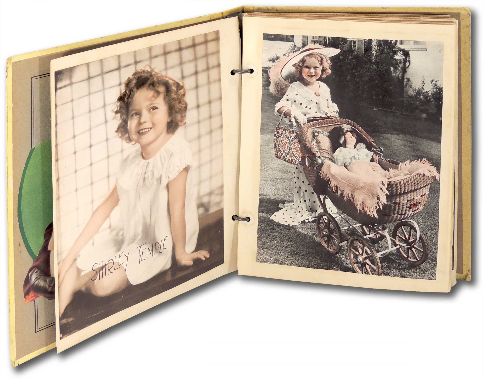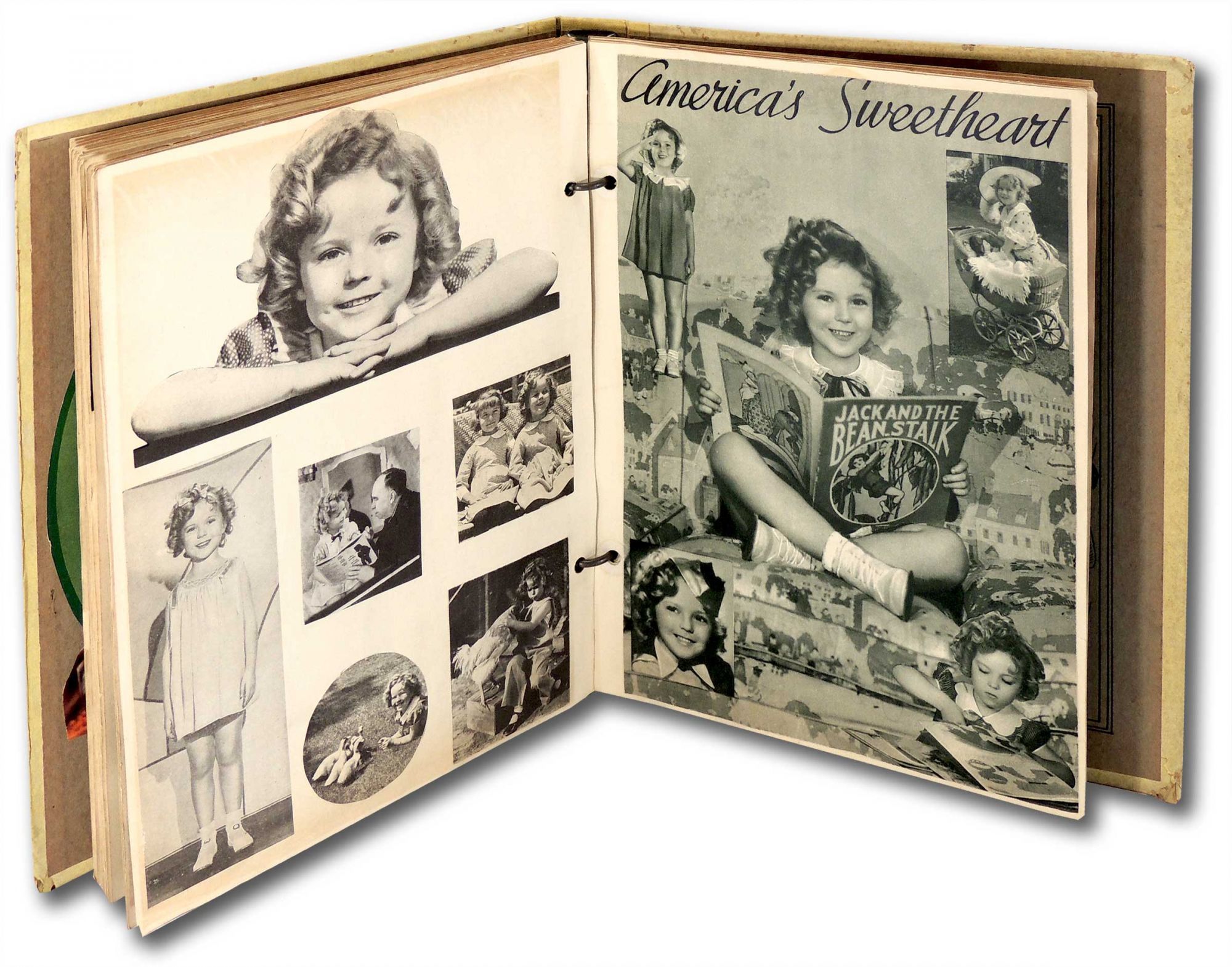 n.p.: n.p., 1934. Hardcover. Very Good. Hardcover. Unique vintage Shirley Temple scrapbook lovingly compiled by a devoted fan. She assembled about 300 color and black and white photos of Shirley, clipped primarily from contemporary magazines. The photos were glued onto pages inserted in a school two-ring binder. The pictures include publicity stills from her early years along with scenes from several of her movies dating through 1934, including Baby Take a Bow, Now and Forever, and The Little Colonel. The first several pages have full-page pictures while the remaining pages have several images per page. Some of the interior pages have darkening along the margins but the images are not affected. Binder is bright yellow with some soiling and with an illustration of Shirley affixed to front cover. In very good condition. Measures 8.75 x 11 inches. EPHEM/041819.
