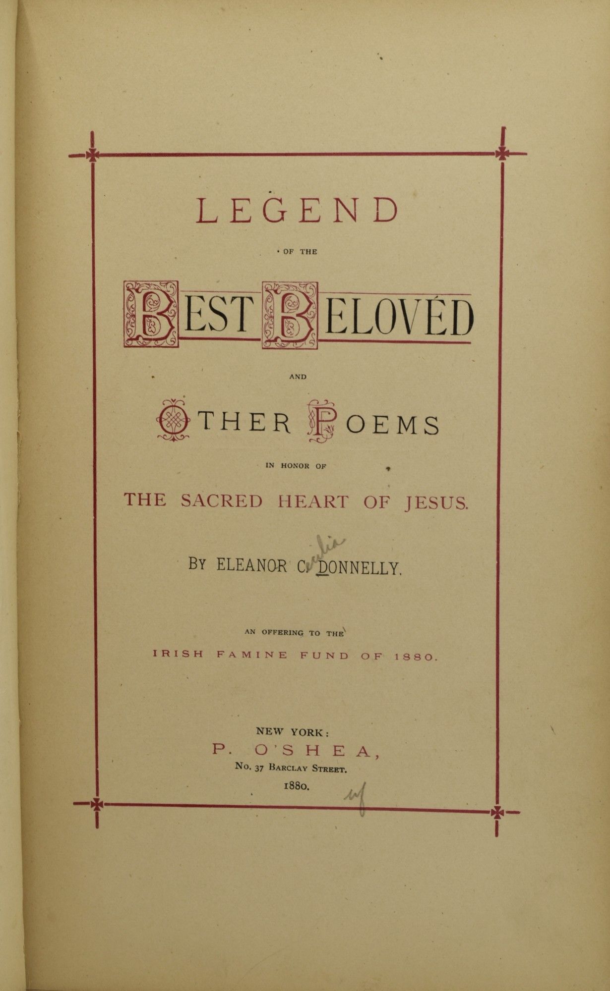 LEGEND OF THE BEST BELOVED AND OTHER POEMS IN HONOR OF THE SACRED HEART OF JESUS. AN OFFERING OT THE IRISH FAMINE FUND OF 1880