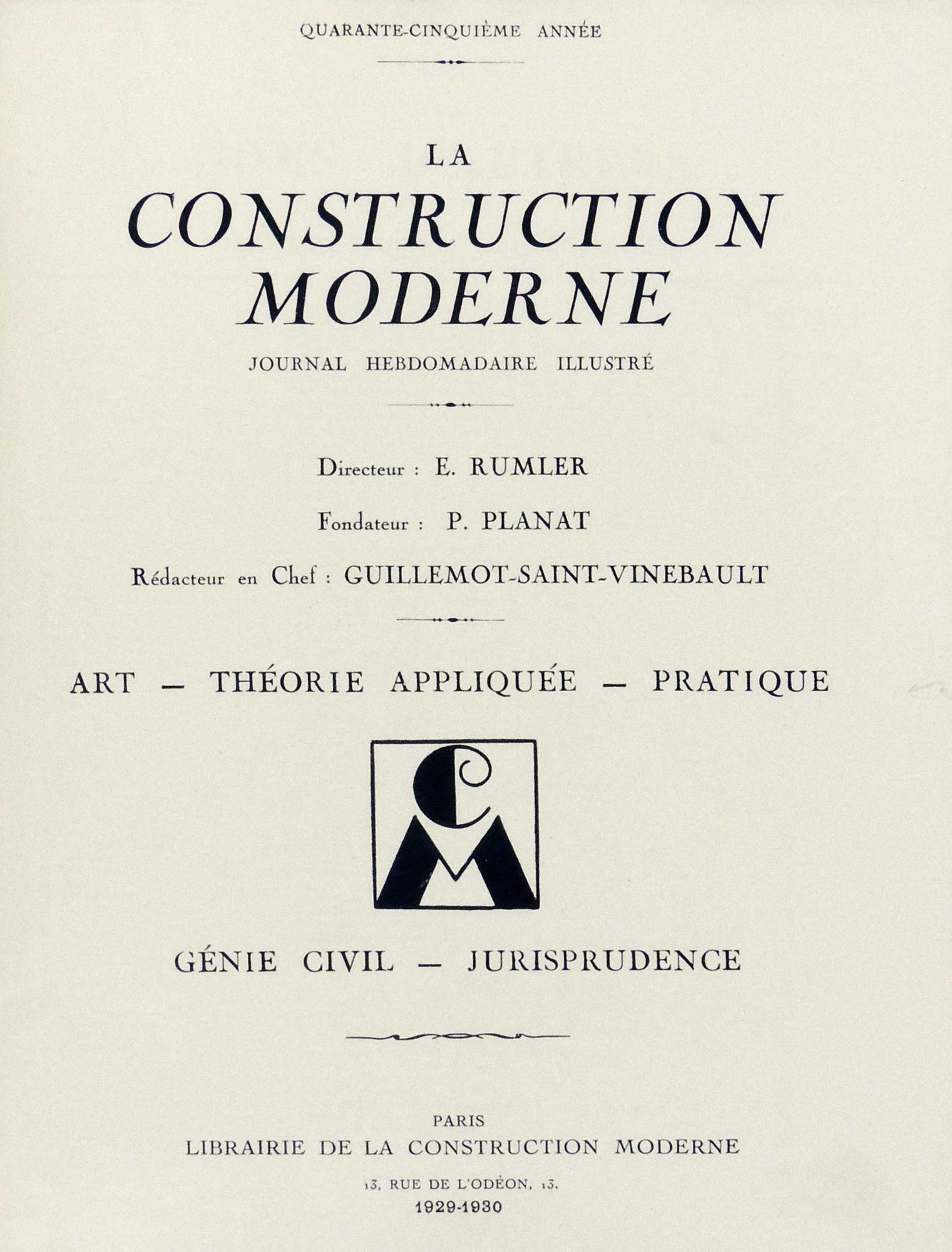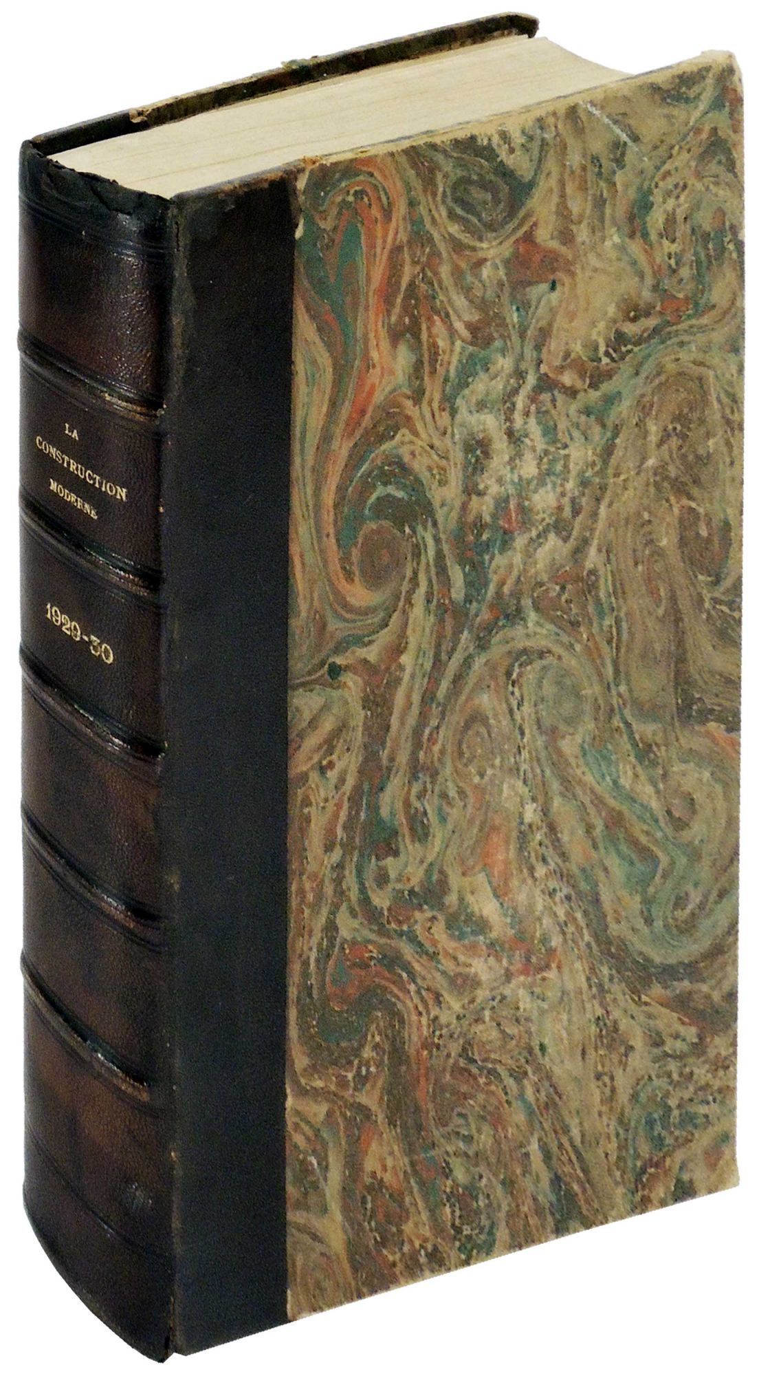 Paris: Librarie de la Construction Moderne, 1930. Hardcover. Very Good. Hardcover. Volume 45 of this weekly journal on all things architectural - theoretical, applied, practical, civil engineering, and legal issues. The issues date from 10/6/1929 to 9/28/1930. They have continuous pagination. The issues are filled with striking black and white photographs of hotels, public buildings, private homes, apartments. Many of the photos show the popularity of Art Deco architecture and design during that period. The coverage is mostly of French architecture although there are occasionally buildings in other European cities. Bound is brown quarter leather and marbled paper covered boards. Light rubbing and bumping to exterior but still very nice. Interior pages very good with occasional mark or closed tear to margins. Measures 9.5 x 12.25 inches. 820 pages. Heavy book that may require extra postage. ARCH/050319.