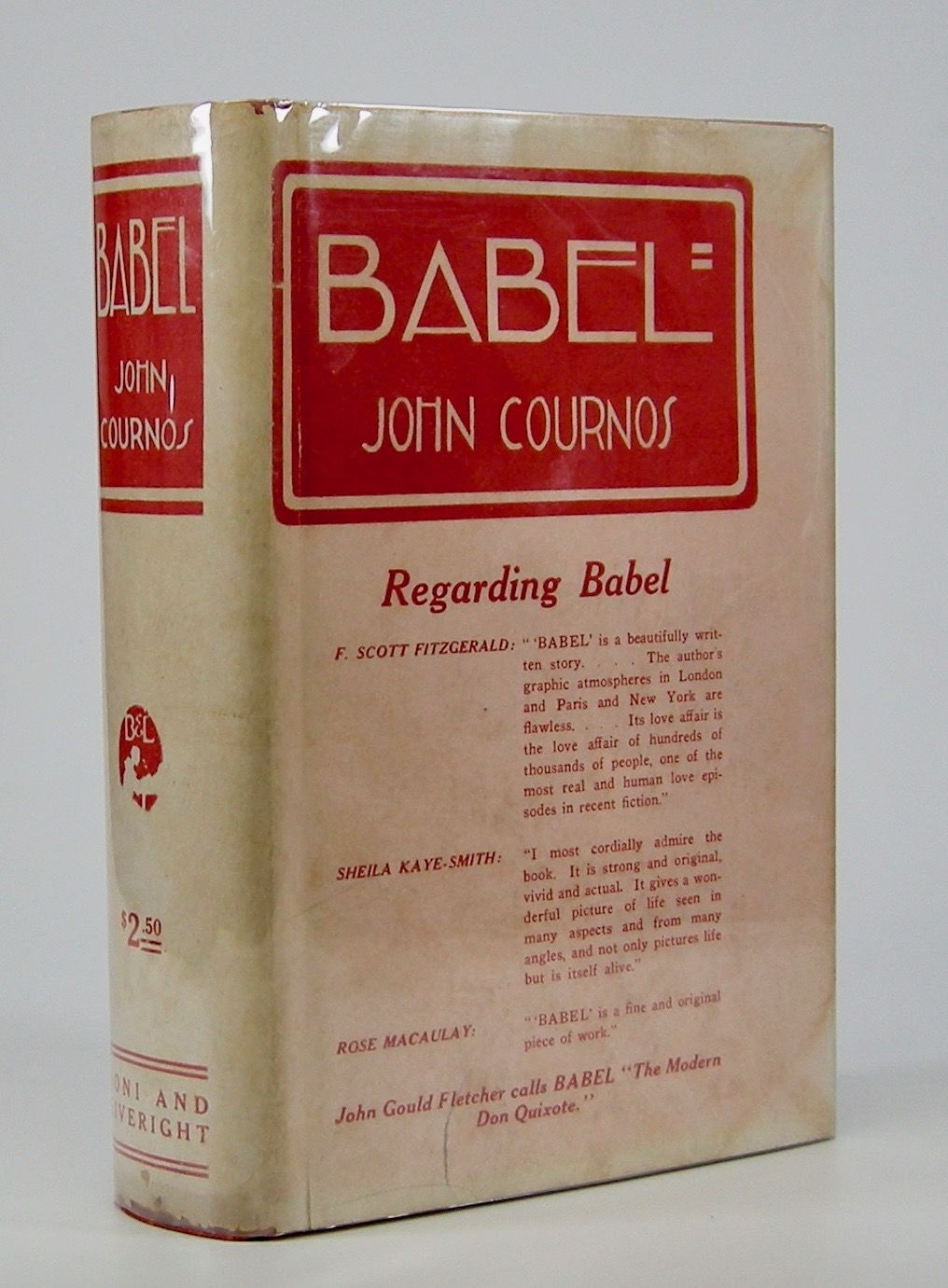 New York: Boni and Liveright, 1922. First American edition. Small ink spot to foredge; faint offsetting to endsheets, else fine in a a very lightly faded dust jacket with just a couple of short closed tears and a bit fraying at spine ends.. 8vo, 431pp; red cloth. The third volume of a trilogy by Cournos, a neglected modernist who was a friend and peer to his better-known contemporaries James Joyce, Ezra Pound, T.S. Eliot et al. This edition is exceedingly scarce in the original dust jacket, which features a blurb written by F. Scott Fitzgerald. It was the first of only five that Fitzgerald provided to publishers (Bruccoli G1) appearing here at about the same time as his novel The Beautiful and Damned.