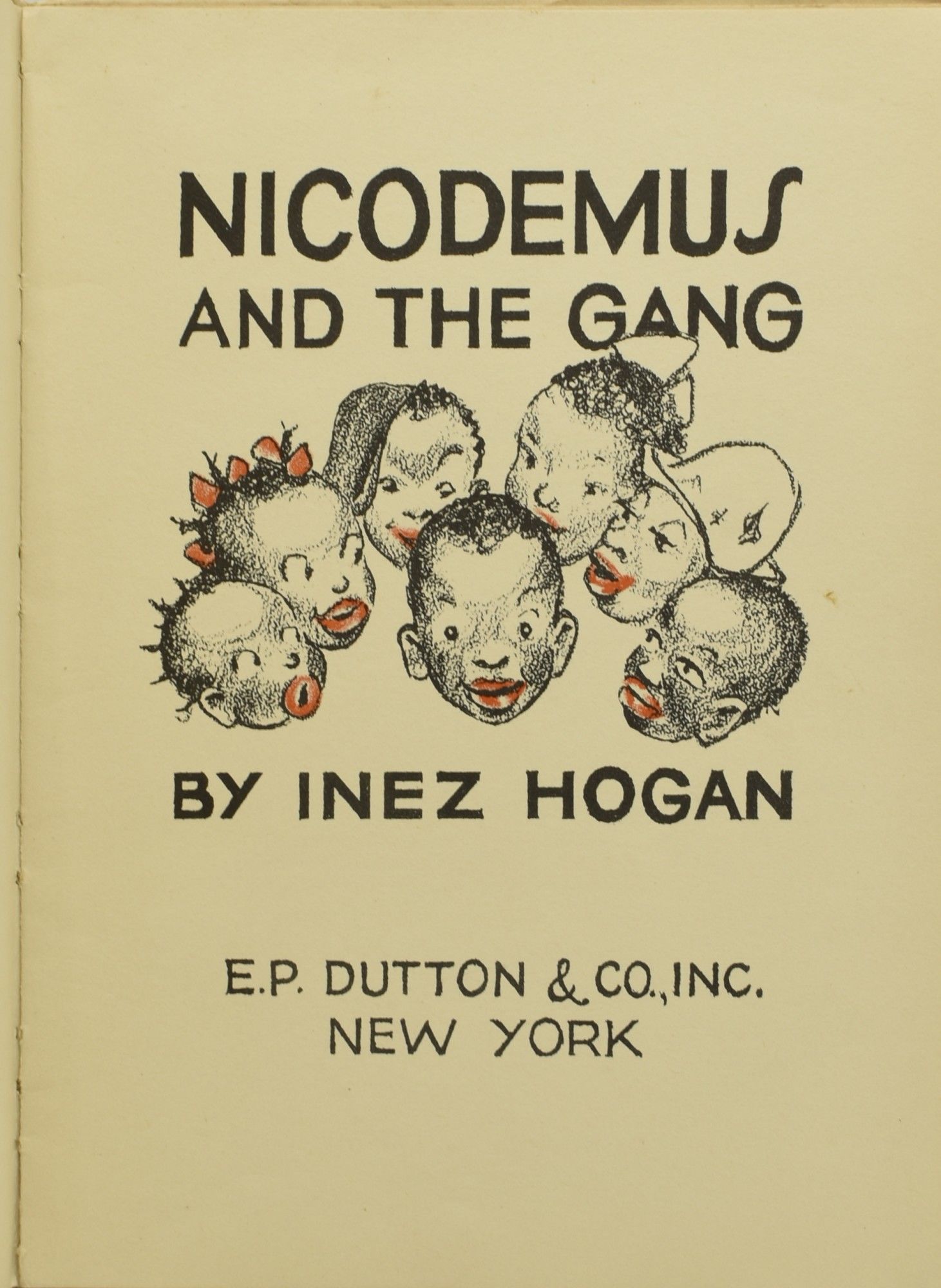 New York: E. P. Dutton & Co, 1939. First Edition. Hard Cover. Very Good binding/Good dust jacket. Stated First Edition of Inez Hogan’s Nicodemus and the Gang. With in text illustrations, colored red. Previous owner’s name on a preliminary, and name-sticker on the front endpaper. Vertical crease to the front endpaper, though it lays flat. Chips and tears to the dustjacket. Pictorial paper boards. Very Good with Good dustjacket. Very Good binding / Good dust jacket.