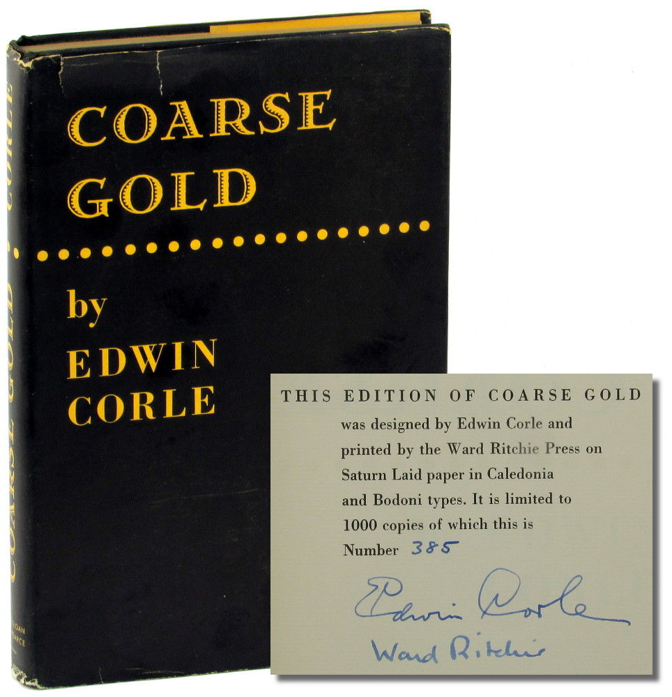 NY/ Boston: Duell, Sloan, and Pearce/ Little Brown and Company, 1952. Hardcover. Very good. Hardcover. #385 of 1000cc signed by Corle and ward Ritchie. Dampstain to bottom portion of dustjacket and textblock, pages tanned, else a very good hardback in an edgeworn jacket that has a few closed tears.