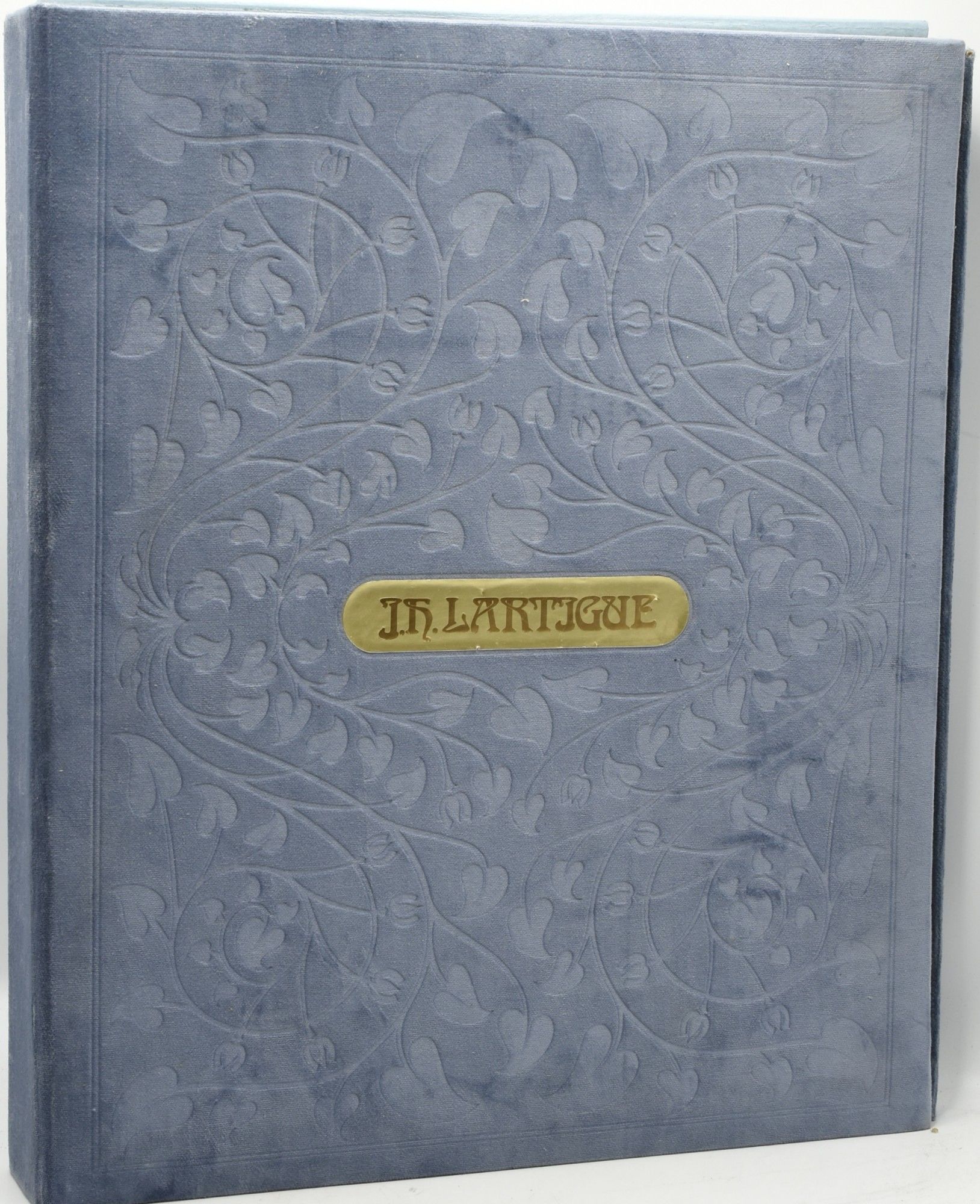 NY: Time Life, 1978. Signed. Hard Cover. Near Fine binding. 10 gelatin silver prints each with the embossed photographer's motif on the recto; an autochrome color plate is tipped in to the inside from cover. Each silver print is a printed folder with a "window" and protected with a tissue guard (one tissue guard has loss and an old scotch tape repair). Numbered 20 "in a worldwide edition of 7500". There is a handsomely printed and illustrated pamphlet by Lartigue. The printed reproduction label attached to the case lining is signed by Lartigue. Housed in an embossed pale blue velvet covered case with marbled paper lining. The top and bottom edges of the "drop-box" tray have been quite discreetly repaired with matching japanese tissue. Near Fine binding.