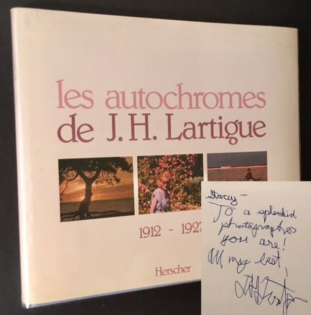 Paris: Editions Herscher, 1980. Cloth. Fine/Fine. WARMLY INSCRIBED BY J.H. LARTIGUE on the front free endpaper. An all-but-pristine copy to boot of the 1980 correct 1st edition, published out of Paris in Lartigue's native French and preceding the American edition by a year. Tight and Fine in a crisp, Fine dustjacket. Oblong quarto, beautifully-printed reproductions of Lartigue's autochromes at each recto, the captions along each facing verso.