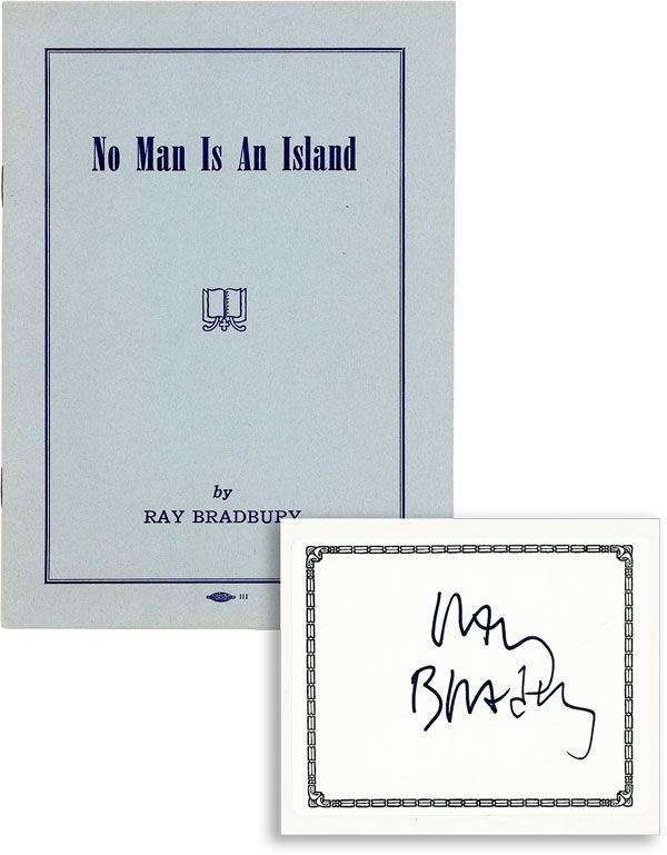 Los Angeles: The National Women's Committee of Brandeis University, Los Angeles Area Chapter, 1952. First Edition. Slim octavo (17.75cm); printed wrappers, stapled; 10,[2]pp. A Fine copy, with a bookplate signed by the author loosely laid in. An early chapbook by Bradbury, containing an address he delivered at the Annual Meeting of the Los Angeles Chapter of the National Women's Committee of Brandeis University (November 7, 1952), printed specifically for their membership.