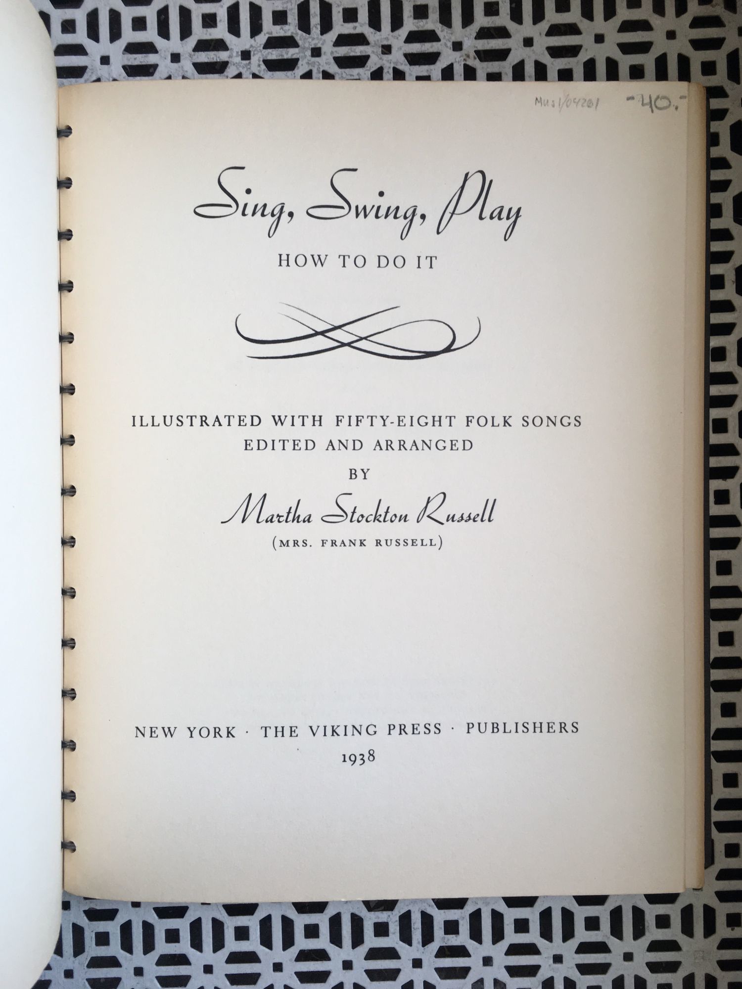 New York: The Viking Press, 1938. Paperback. Very Good. Paperback. SCARCE. Very good in flexible leatherette wrappers with gilt lettering on front cover. Ring Bound. Light browning to edges of pages. Else is clean and bright. Filled with sheet music with lyrics. 93 pages. Music. MUS1/04261.