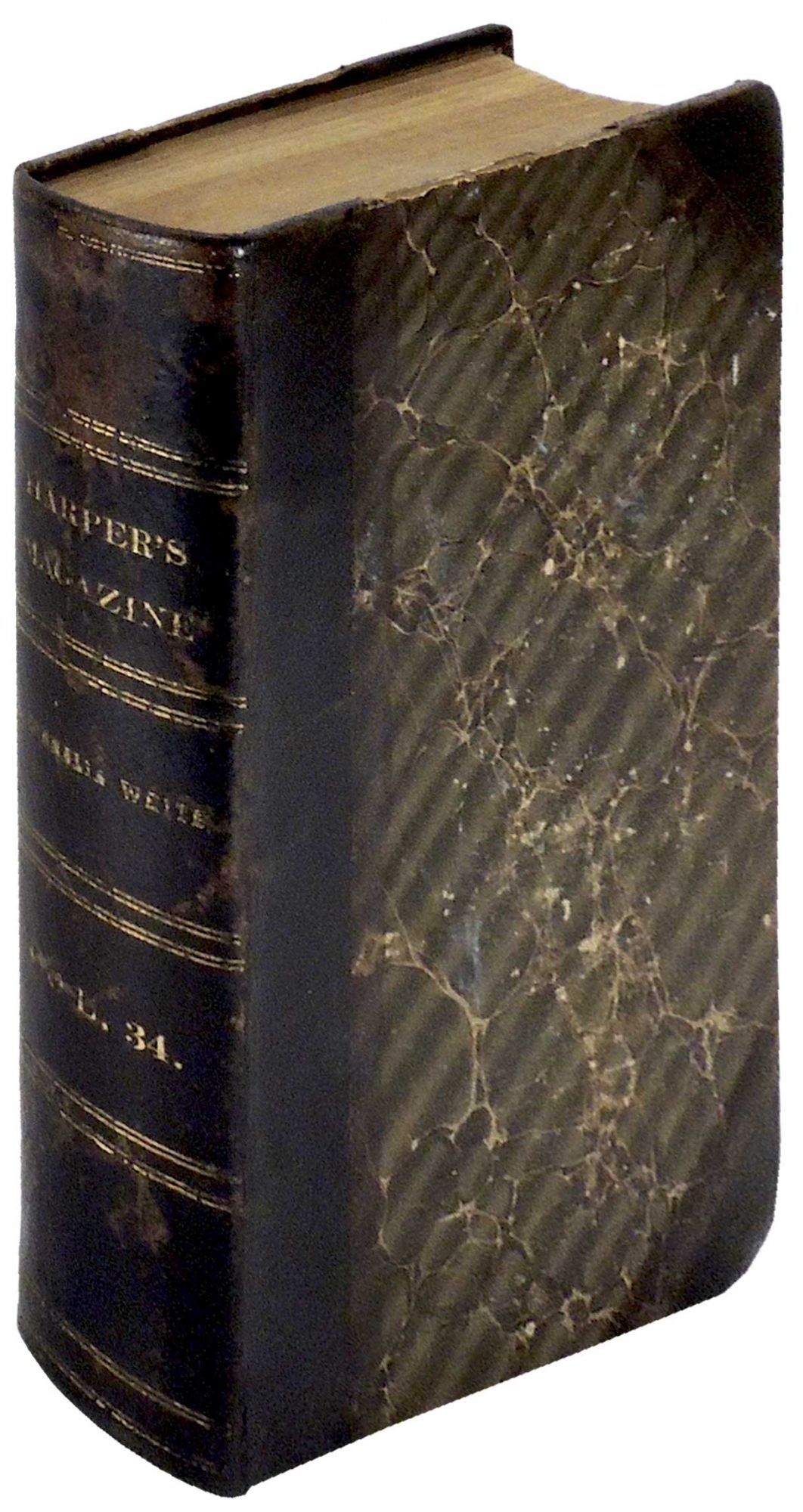 New York: Harper & Brothers, 1867. Hardcover. Very Good. Hardcover. Includes Twain's "Forty-Three Days in an Open Boat" on pages 104 - 113. This was Twain's first publication (with his name misspelled, Mark Swain). Bound in three quarter black leather over marbled paper covered boards with gilt title, volume number, and previous owner's name (M. Cornelia Welts) to spine. Rubbing and wear to leather, boards, and edges. Occasional spots of foxing to interior, but clean overall. Illustrated. 816 pages. PER/060619.