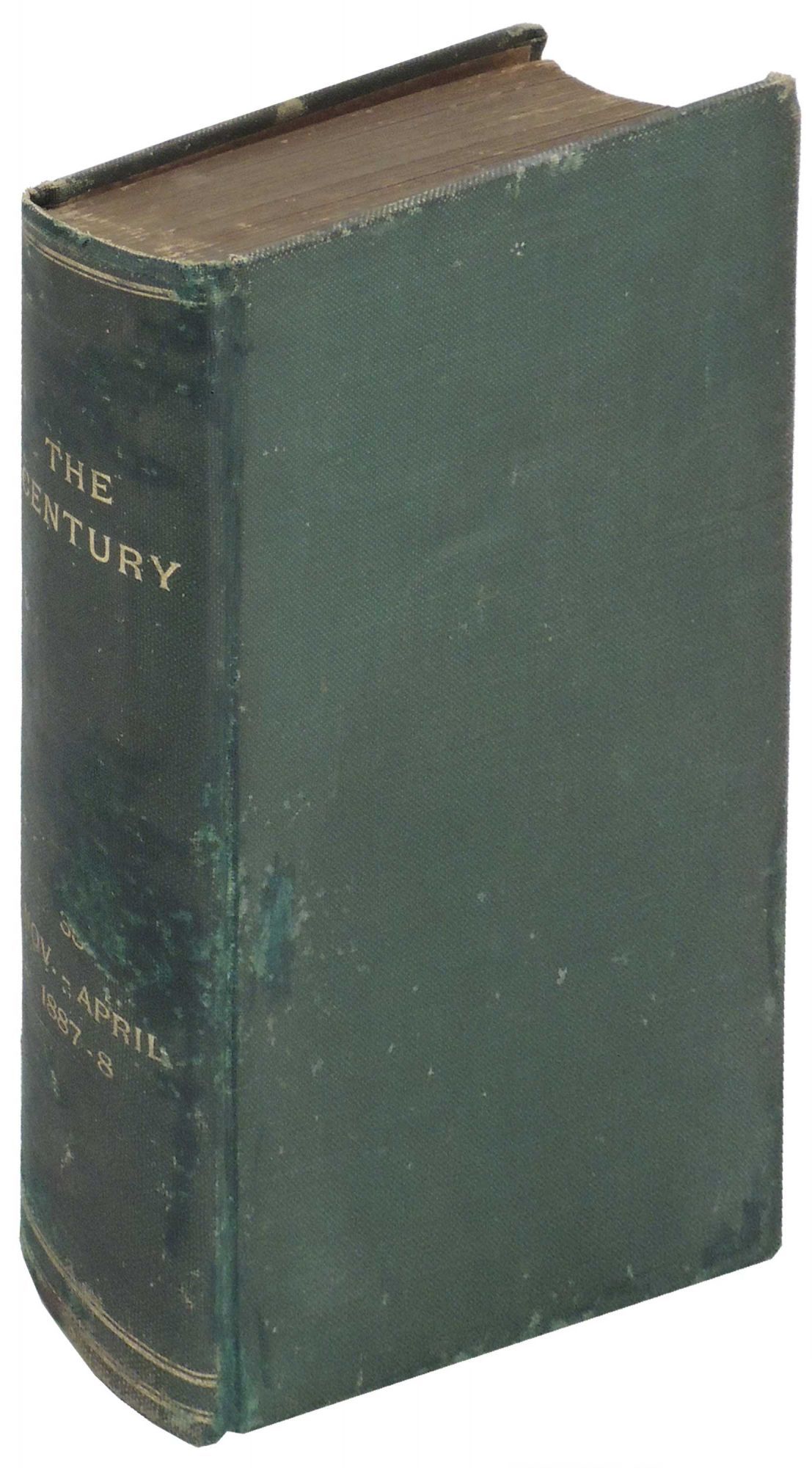 New York: The Century Co, 1887. Hardcover. Very Good. Hardcover. Includes Twain's "Meisterschaft" on page 547, Henry James on R.L. Stevenson, and Theodore Roosevelt's "Ranch Life in the Far West" with illustrations by Frederic Remington. Ex-library. Bound in green cloth library binding with gilt title and volume number 35 to spine. Discoloration to boards. Library stamp to title page appears to be only library marking. Browning to interior with some brittle pages. Illustrated. Slight odor. 972 pages. PER/060619.