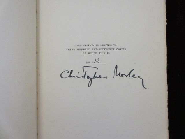 Garden City NY: Doubleday, Page & Co, 1926. LIMITED EDITION. Hard Cover. Very Good+. SIGNED BY CHRISTOPHER MORLEY ON COLOPHONE PAGE without personalization. LIMITED TO 365 COPIES. THIS IS No. 38. Illustrated with pen drawings by Walter Jack Duncan. Bound in black cloth spine and patterned paper covered boards, printed paper spine label, top edge gilt. Very good+ with mild edge wear, top edge gilt slightly scuffed. No dust jacket. 289 pp.