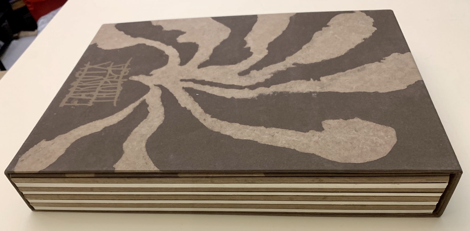 This book combines the computer processing of colour technology and the quality of traditional typographical machines at the Atelier du Livre d’Art et de l’Estampe at the Imprimerie Nationale, directed by Christian Jourdain. Tight, bright, and unmarred. Red cloth binding, paper onlay, gatefold dos-á-dos binding, color printed onlay labels, color printed endpages, mixed media, techniques include typographic print, chromolithography, phototype, helioprint, plates and prints using a selection of colours for the prints from original digital sources; matching archival case. 8vo. np. Illus. (color and b/w plates). Limited edition of 99 copies and 5 hors commerce copies. Signed by the artist.