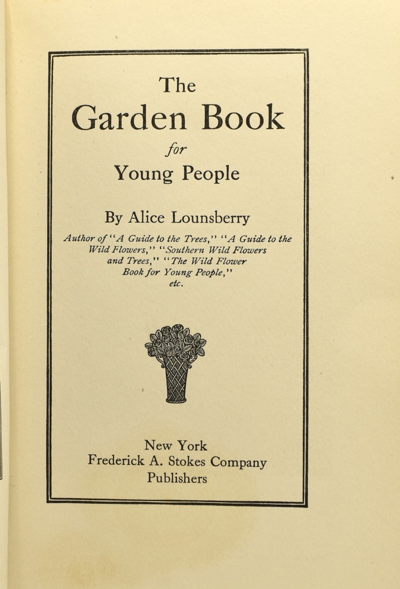 New York: Frederick A. Stokes Company, 1908. First Edition. Hard Cover. Very Good binding. Story of two young siblings planting a triangular flower garden. Photographic plates throughout. Textblock is bright. Contemporary owner’s name on the front endpaper. Tan cloth with brown lettering and colored illustration. Very Good binding.