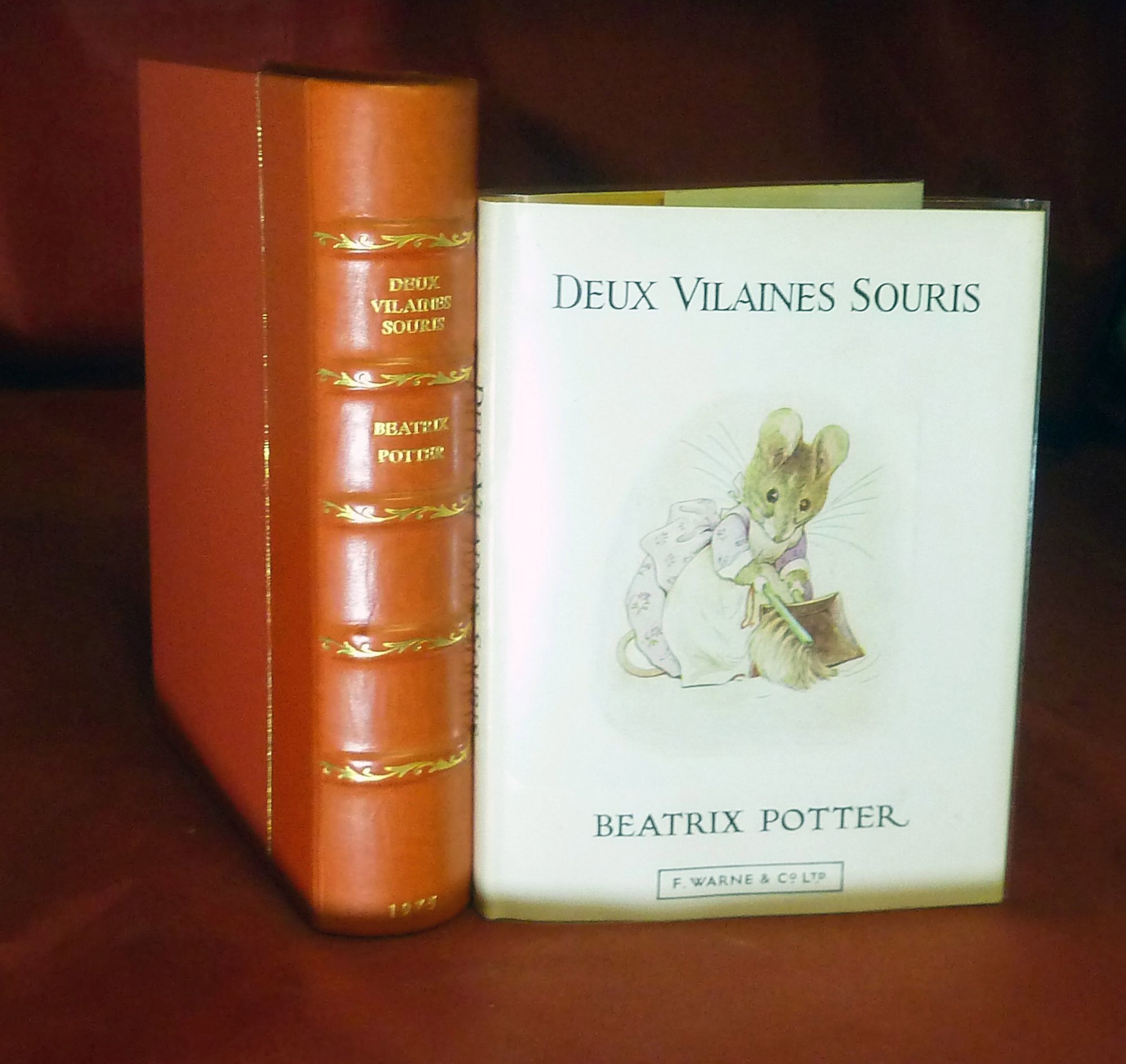 London & New York: Frederick Warne And Co. Ltd, 1975. Hardcover. Orig. yellow boards, paper color inset front cover. Fine in fine dust wrapper replicating front cover design. In fine velvet lined half red calf folding box with matching red cloth, again replicating in gilt the original front cover illustration. Box bound by Asprey, raised bands, backstrip lettered and decorated in gilt. 59 pages. 14.5 x 11 cm. Translated from the English by Patrice Charvet Et Veronique Canal. Colour frontispiece decorated endpapers, and 26 color plates. As new copy.