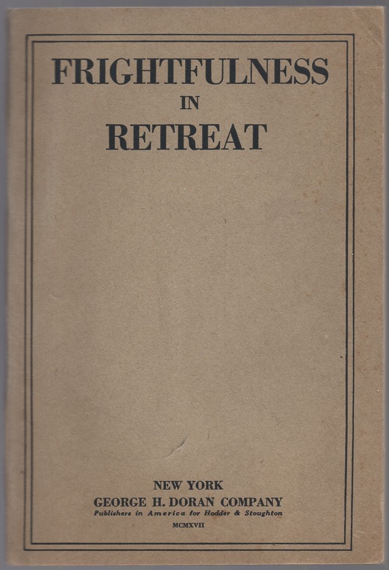 New York: George H. Doran Company, 1917. Softcover. Near Fine. First American edition. 12mo. 57pp. Original stapled beige wrappers. A trifle soiled, very near fine. Containing: I. Frightfulness in Retreat, II. Proceedings of the French Senate, March 31st, 1917 (Translated from the *Journal Officien de la Republique Francaise*), III. Official Report of the French Commission Appointed to Investigate Acts Committed by the Enemy in Violation of the Law of Nations.