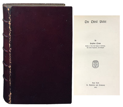 New York: D. Appleton and Company, 1897. First Edition. Hardcover. Very Good. About Very Good. Early leather binding with five raised bands, dulled gilt on the spine, rubbed at the hinges. Square and firmly bound but with the first few leaves becoming loose, original cloth cover bound-in at the rear, bookplates inside the front board and on the front endpaper. Crane's attempt at a romance novel, with contemporary critics calling it "vacuous trifle," and "as inane a story of summer resort flirtations as was ever written.