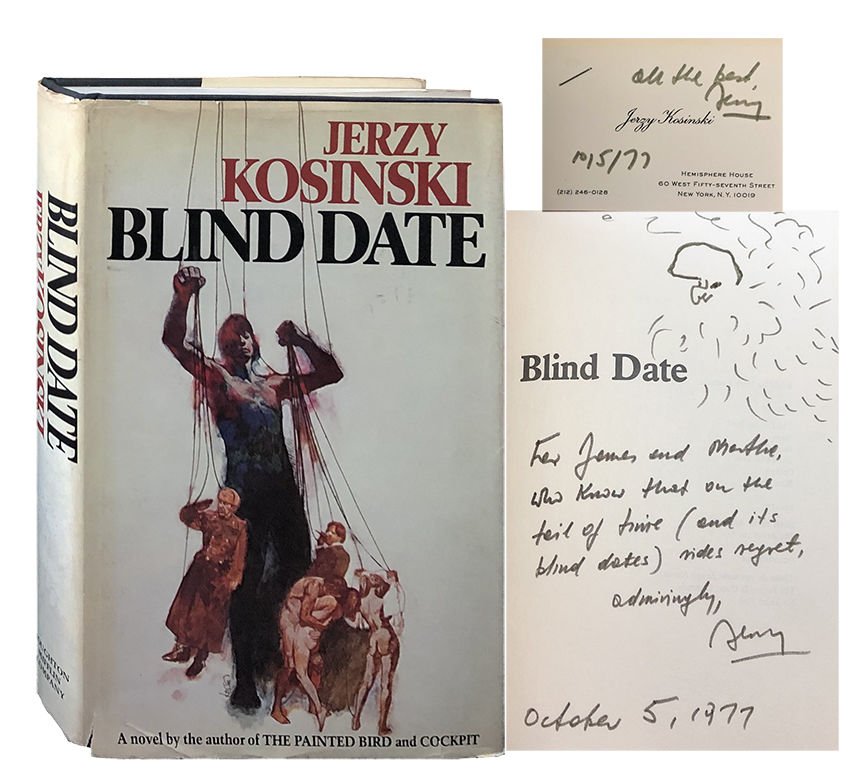 Boston: Houghton Mifflin Company, 1977. First Edition. Hardcover. Near Fine/Very Good. Inscribed on the half-title page by Kosinski to Time editor Martha Duffy and her husband, with a signed business card stapled to the verso of the front endpaper, and signed again by Kosinski on the title page. Fine in a Near Fine jacket, unclipped ($8.95), generally toned, lightly rubbed at the edges. Black buckram with gilt lettering on the spine. Square and firmly bound, clean internally. Kosinski's novel of the globetrotting George Levanter, who "finds himself enmeshed with heads of state, petty bureaucrats, industrial tycoons, sex scavengers, renowned scientists, jet-setters, and national heroes.