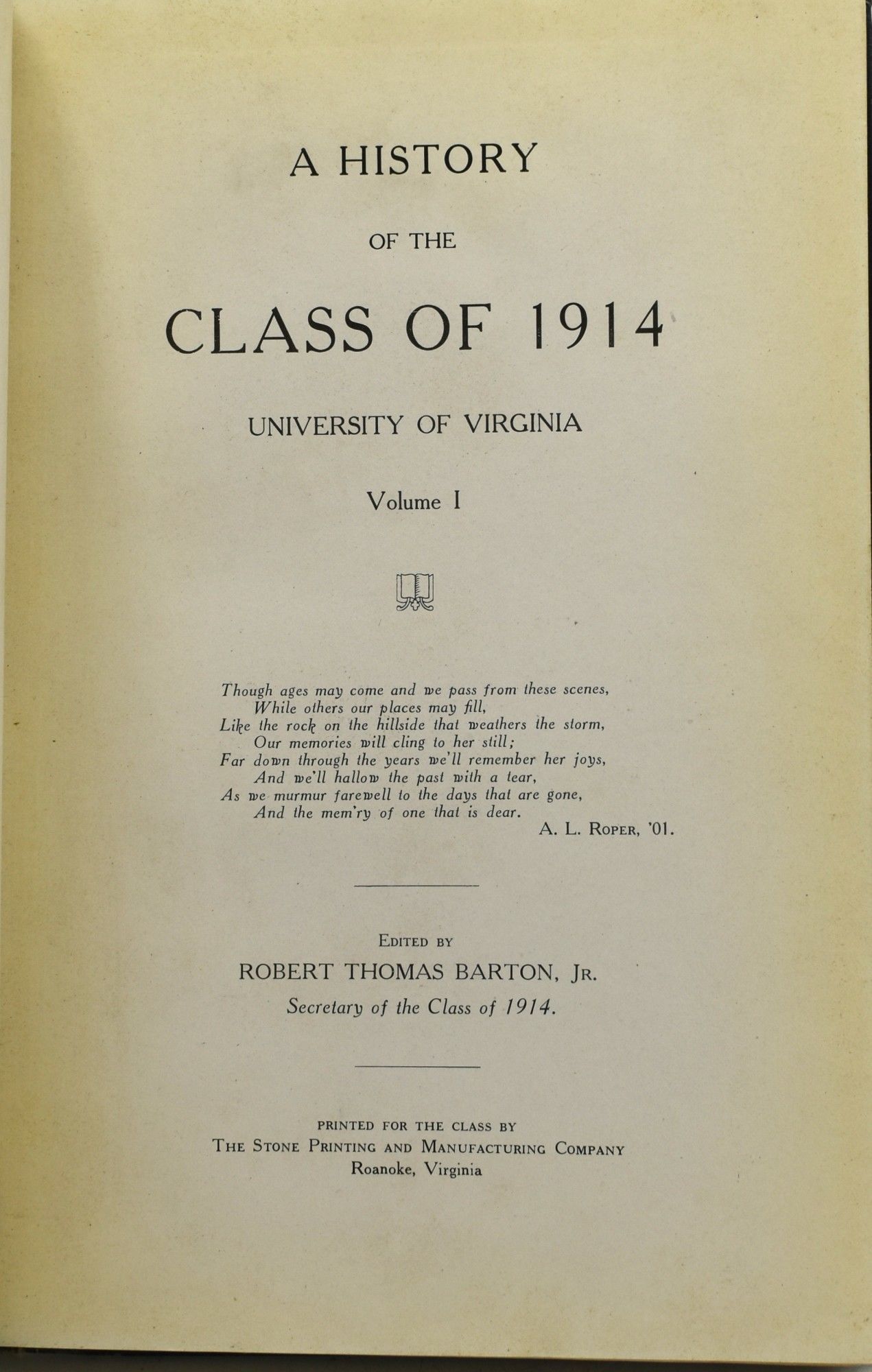 - Roanoke, Virginia: Printed for the class by the Stone Printing and Manufacturing Company, 1914