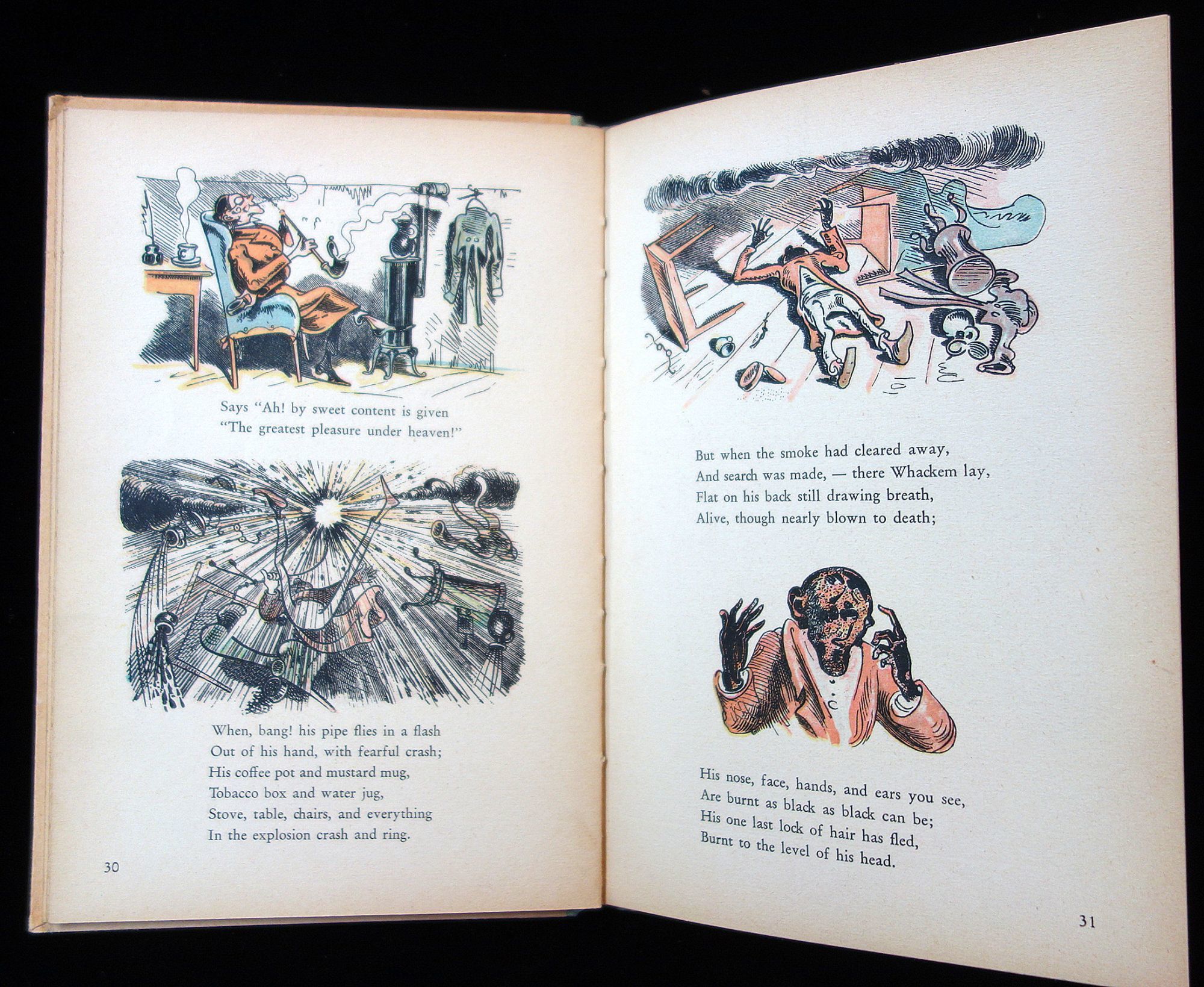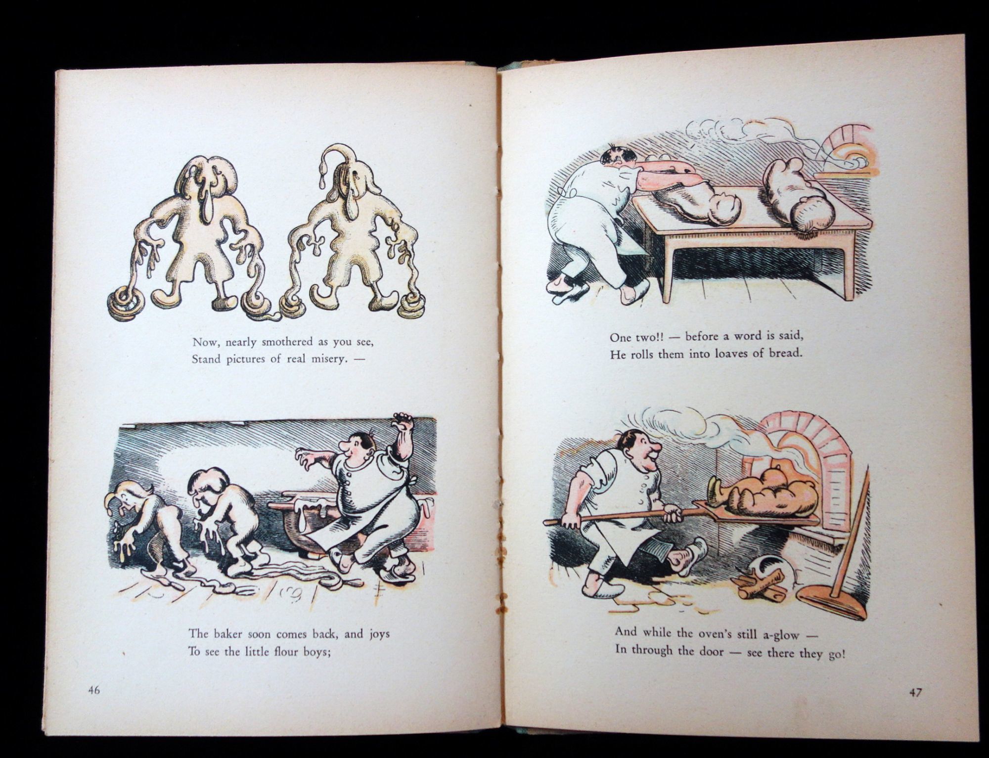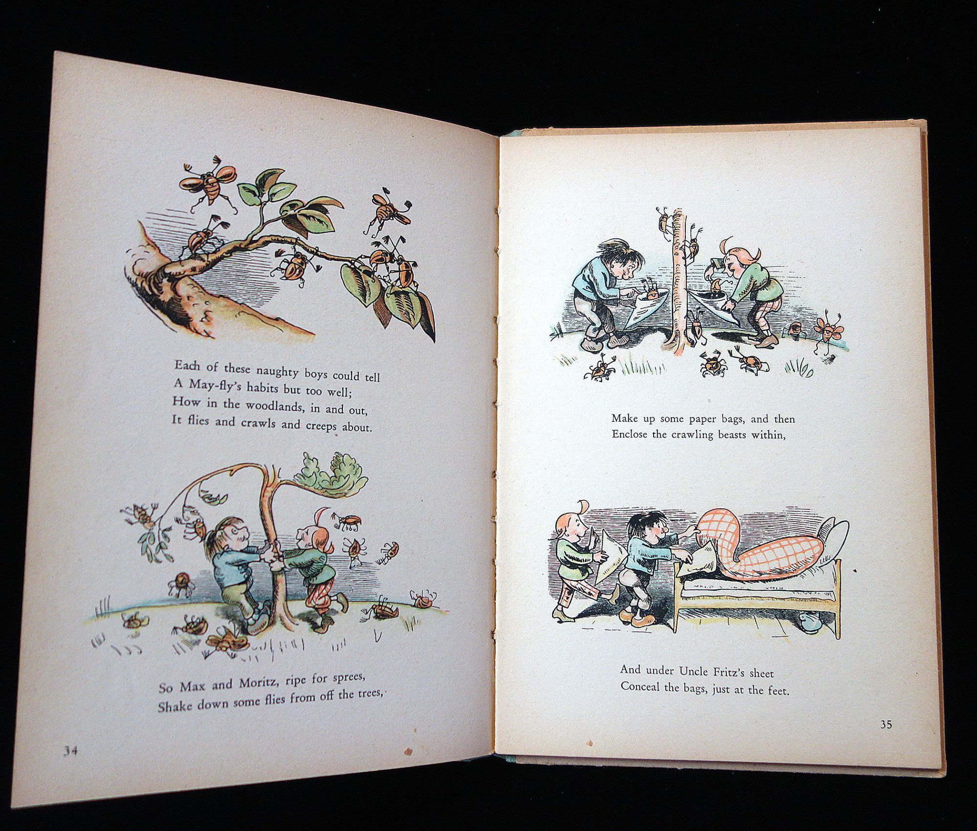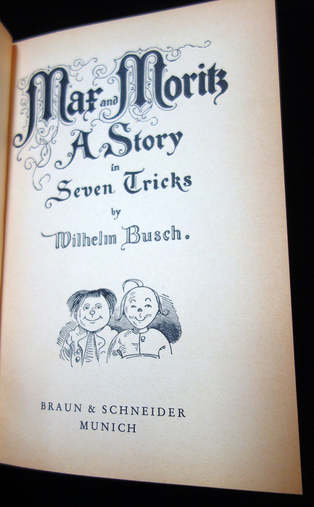 Munich: Braun & Schneider, 1952. 56 pp. hard cover with applied litho. Profusely illustrated in color with comic characters - Mar and Moritz. Accompanied by a pair of bendable dolls in the image of the characters in the book. Measures 8 3/4" x 6 1/4'.