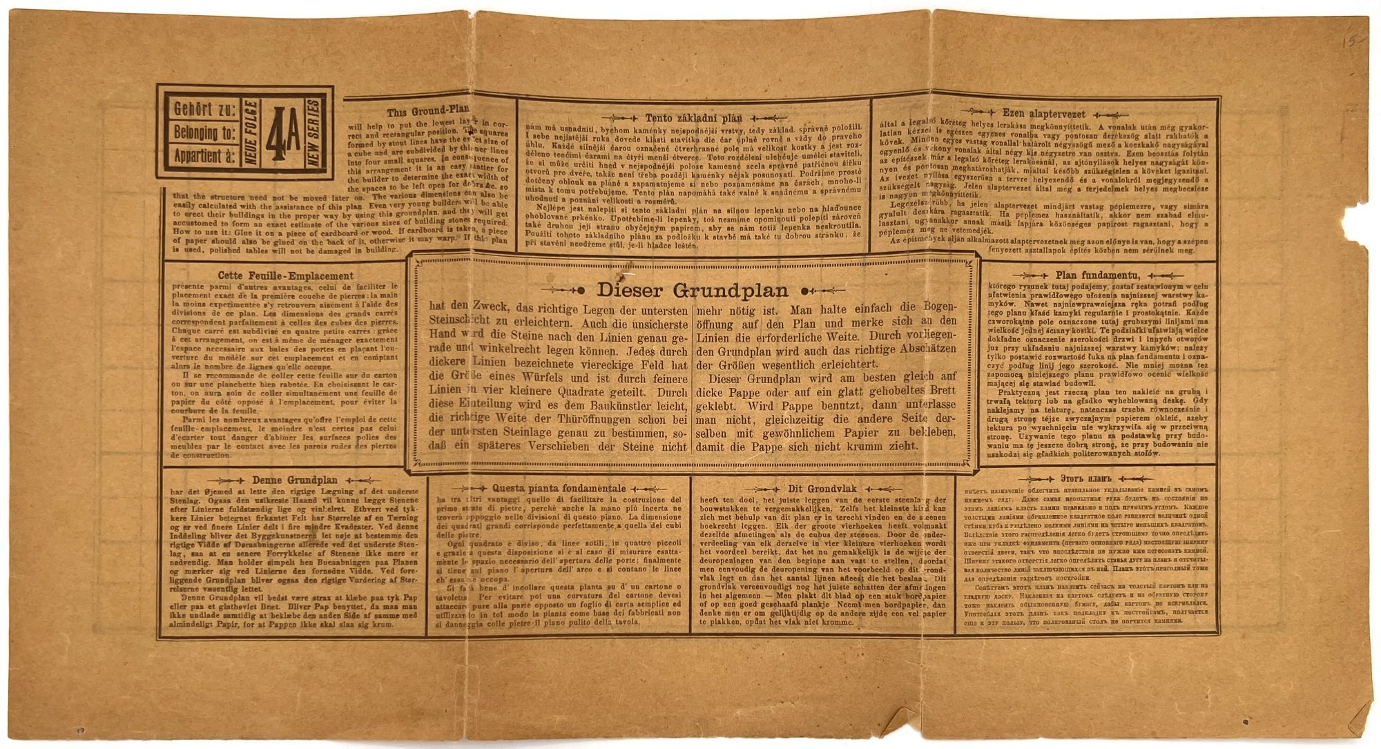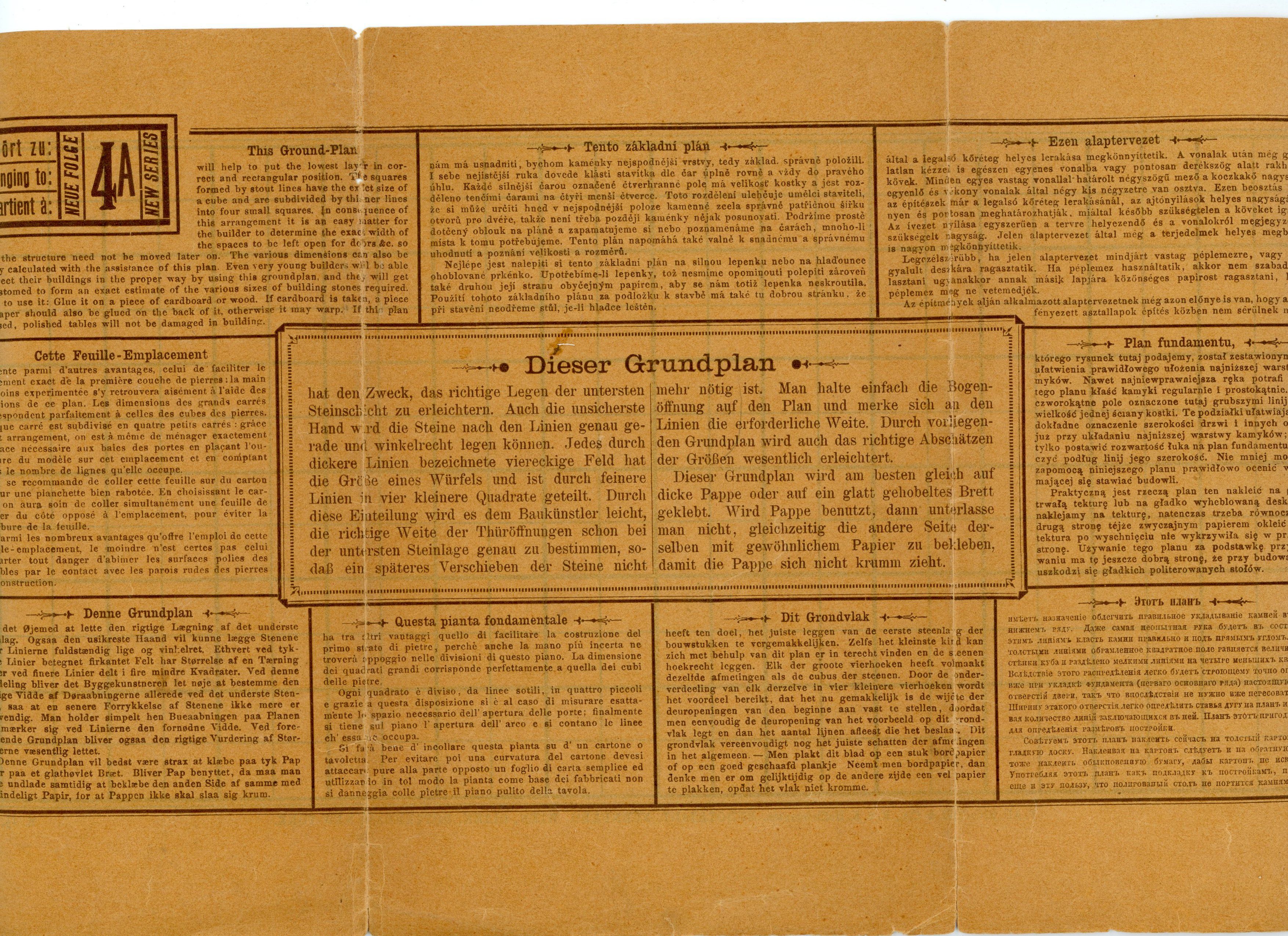 This is one of Germany's most famous classic toys. It is a modular toy system, first designed in the art institution in Rudolstadt by artists, illustrators and architects. One would cut out the doors and place them on the grid provided.