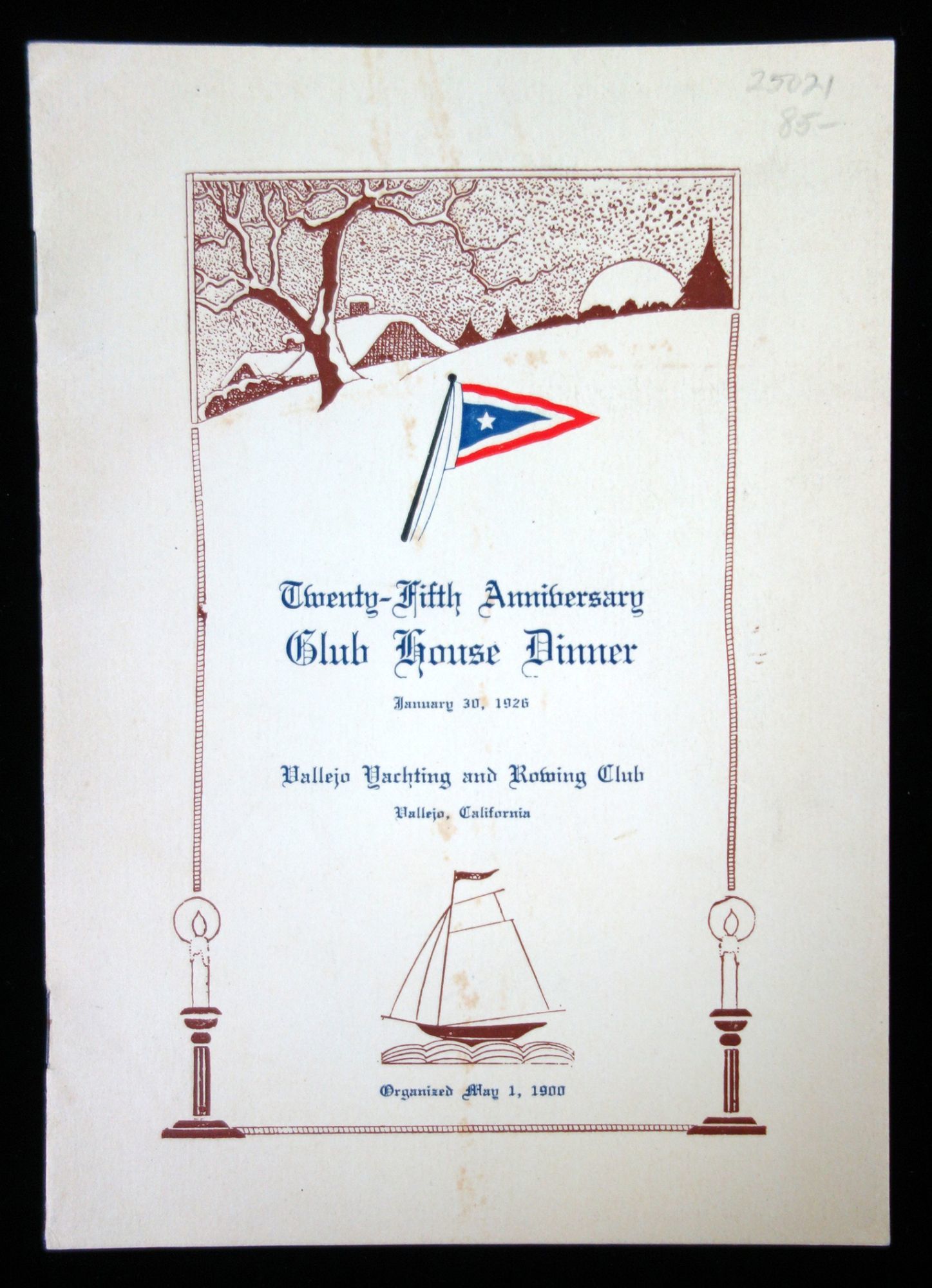 Twenty-Fifth Anniversary Club House Dinner menu, Vallejo Yachting and Rowing Club, 1926