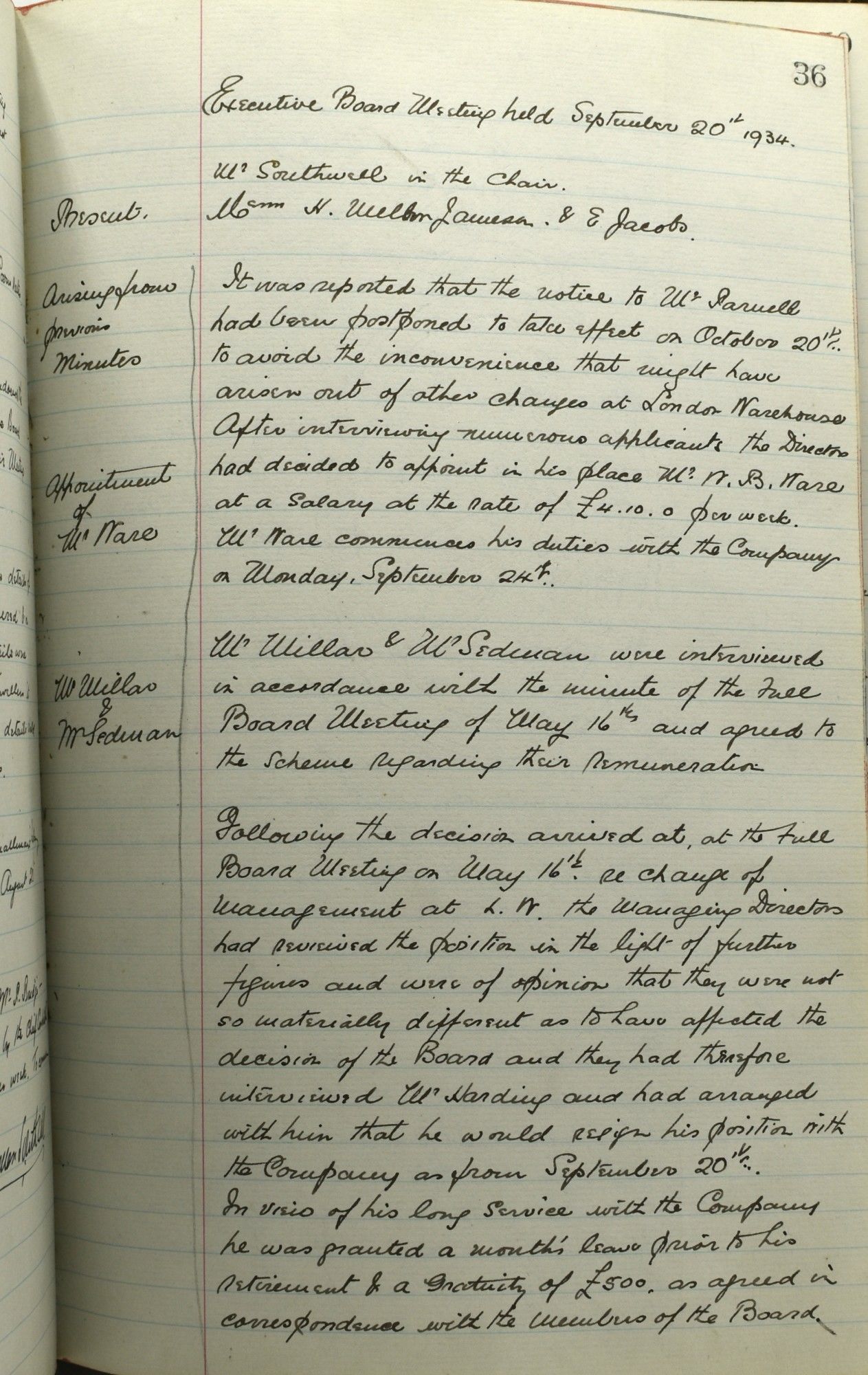 [EXECUTIVE BOARD MEETING MINUTES] H. M. SOUTHWELL LTD. 1933-1936