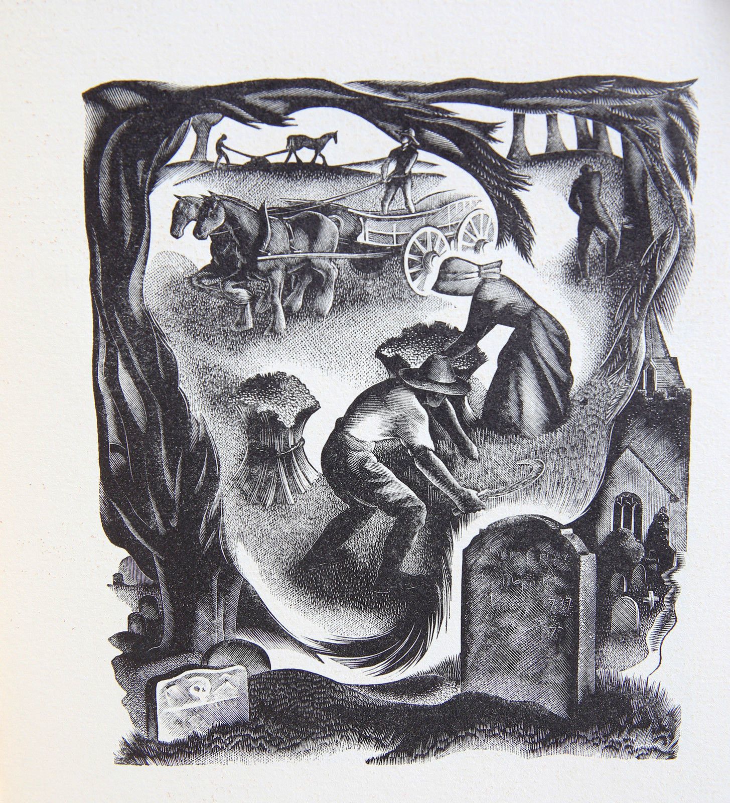 London: Limited Editions Club, 1938. Hardcover. Very slight foxing to endpapers. Covers a little rubbed. Very Good to Near Fine, lacking the slipcase. Agnes Miller Parker. Small quarto (7" x 10") bound in forest green buckram with a relief design on the front cover stamped in silver, 92 pages. Superbly illustrated with 32 full-page wood engravings by Agnes Miller Parker sketched in the very same country church-yard that inspired the poem. Copy #323 of 1500 SIGNED by the artist on the colophon page. A beautiful book.
