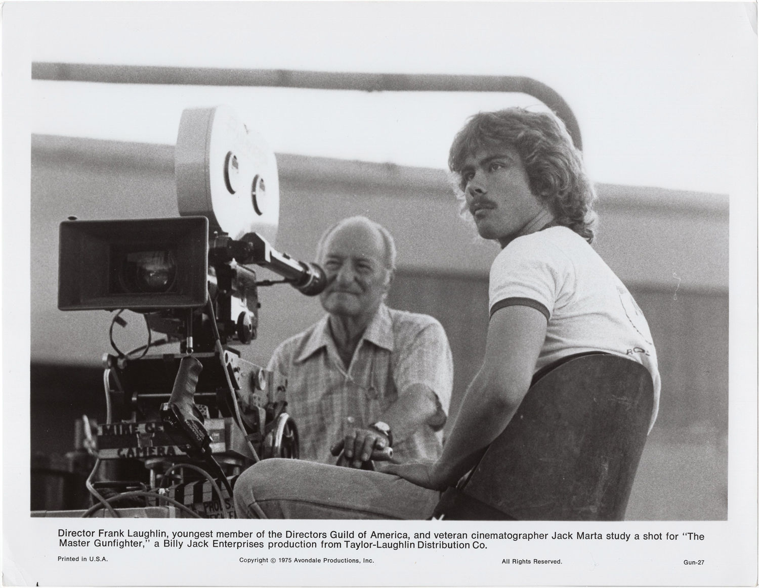 N.p.: Billy Jack Enterprises. Two vintage press photographs from the set of the 1975 film. With an studio stamp on the verso of one. Riding high on his fame from "Billy Jack," probably this was Tom Laughlin's most ambitious effort as a director-star.