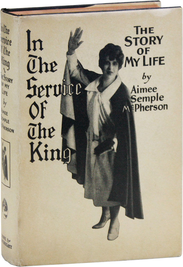 New York: Boni and Liveright, 1927. First Edition. Octavo (19.5cm.); publisher's cloth in tan photo-illustrated dust jacket, red topstain; 316pp.; photographic portrait frontispiece. Cloth gilt a bit dulled, topstain a shade darkened, contemporary ownership signature to front free endpaper, tiny closed tear at top edge of rear jacket panel not approaching text, else Near Fine in a superlative copy of the jacket. Autobiography of Aimee Semple McPherson (1890-1944), the evangelical speaker and founder of the Foursquare Church, best known for pioneering the use of mass media, specifically radio, to broadcast her sermons. The present memoir includes McPherson's supposed kidnapping in Mexico, an event heavily called into question by contemporary media, who conjectured that McPherson and her lover had cooked up the story to cover up their liaison.