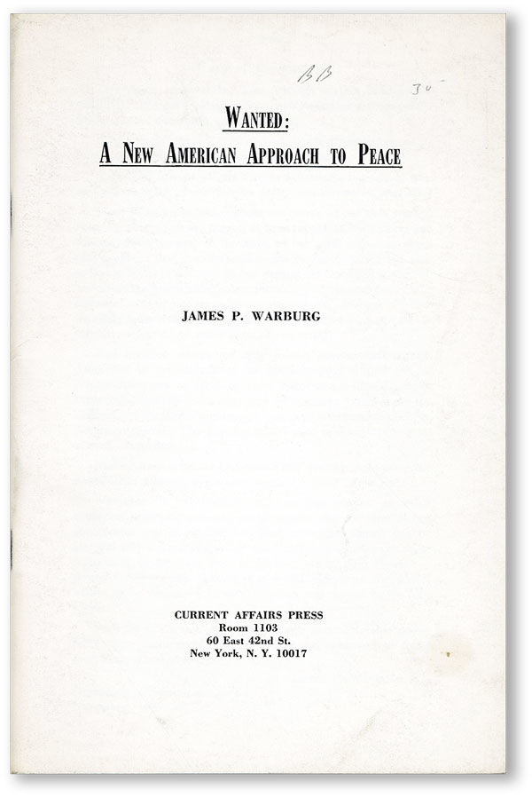 New York: Current Affairs Press, (1968). First Edition. Staple-bound pamphlet. Printed thick paper wrappers; 32pp. Mild cover soil; internally clean, tight and unmarked; Very Good. Critique of Vietnam-era foreign policy, by the co-founder the Institute for Policy Studies and the Society for the Prevention of World War III.