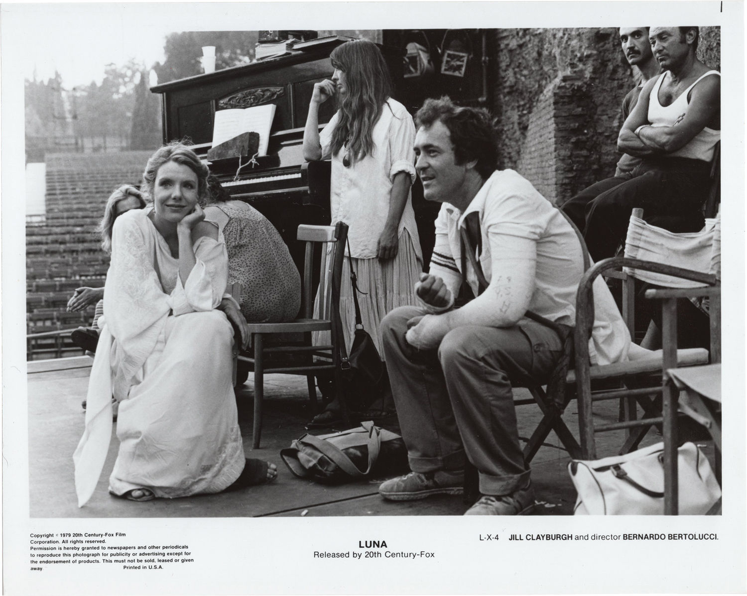 Italy / US: Twentieth Century-Fox, 1979. Vintage studio still photograph of actress Jill Clayburgh and director Bernardo Bertolucci on the set of the 1979 film.