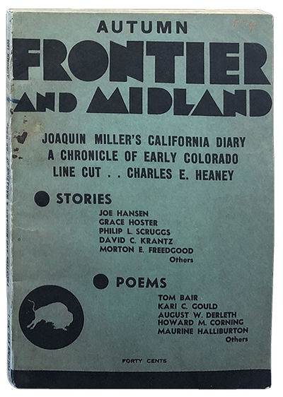 Missoula: Frontier and Midland, 1935. First Edition. Paperback. Good. Volume XVI, No. I. Good. Wraps toned at the spine, generally rubbed and with a few creases. Square and firmly bound with the front wrap a bit over extended. This issue features the first appearance of August Derleth's poem "Dusk Over Wisconsin.