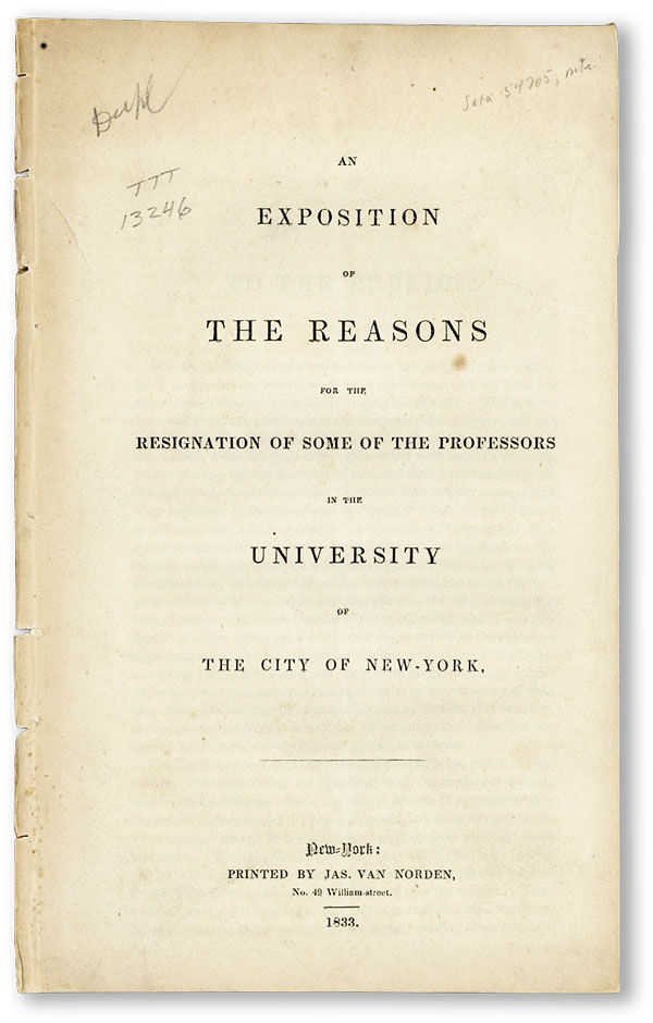 An Exposition of the Reasons for the Resignation of Some of the Professors in the University of the City of New-York