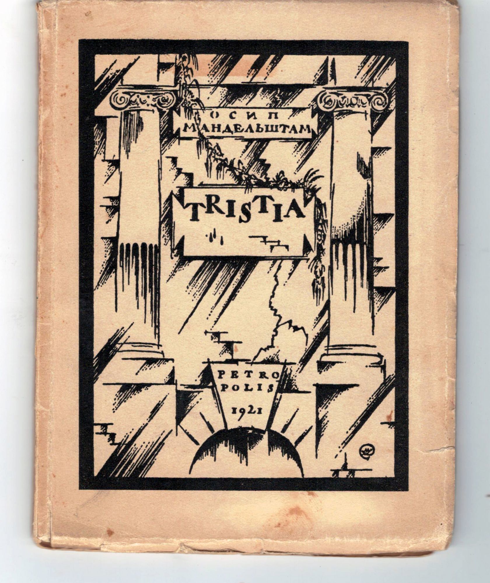 St. Petersburg & Berlin: Petropolis, 1922. First edition. Original Wraps. Orig. illustrated wrappers, yapp edges. Very good. 75 pages. 16 x 12 cm. This second collection of poetry, 943 poems, composed between 1915 and 1922, published shortly after Mandelstam moved from St. Petersburg to Moscow with his new wife Nadezhda. Here he express the inner exile of the poet in communist Russia. He borrows the title from Ovid (Sorrows) who was physically exiled to Tomis, Romania for reasons that remain unknown today. Original wrappers with cover illustration and publisher's mark designed by M. V. Dobuzhinskii. Slight nicks to edges at lower front cover. HELLYER 759, THE RUSSIAN AVANT-GARDE BOOK 377.