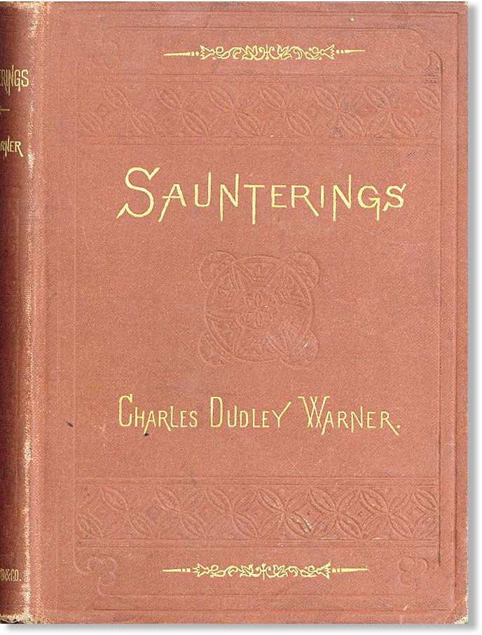 Boston: James R. Osgood and Company, 1873. Later printing. 12mo (15cm.); brown publisher's cloth stamped in blind and gilt; xii,289pp. Spine cocked; blindstamping worn on spine; small tear in cloth at spine base and adjacent material loss on rear panel; red edgestaining fading and toned in spots. Some leaves gently pulled. Stray pencil marks throughout. Good; intact and complete.