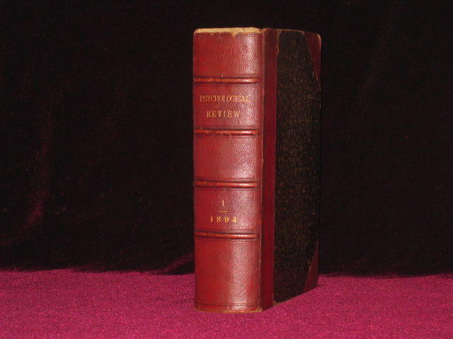 New York & London: Macmillan and Co, 1894. First Edition. Very Good. Large octavo, 659 pages, plus Index of Names and Subjects; 3/4 red morocco over marbled boards. Contains papers by such luminaries as William James, John Dewey and Francis Galton. Six bi-monthly parts, bound together: volume I, No. 1, January; volume I, No. 2, March; volume I, No. 3, May; volume I, No. 4, July; volume I, No. 5, September; volume I, No. 6, November. Internally, quite clean, hinges strengthened.