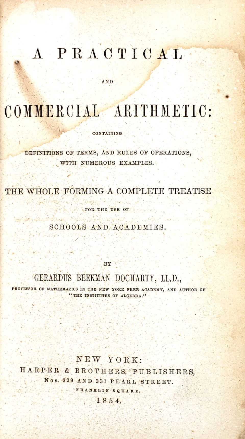 New York: Harper & Brothers, 1854. First Edition. Hardcover. Good. New York: Harper & Brothers, 1854. First Edition. Octavo; x, [11]-266pp. Rebound in red cloth with gilt lettering to spine. Marbled page edges. Paper advert covers retained. Boards lightly bumped at corners and spine ends, with pencil coloring down joints. Original front paper cover chipped along edges and reinforced with clear tape. Large dampstain across top of page block decreasing in size through book. Pages a bit rippled. Mathematical problem worked out in pencil on inside of back paper cover, else pages unmarked. Binding is sound.