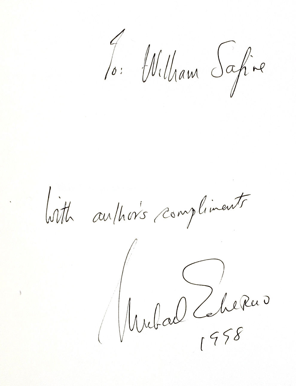 New Haven: Yale University Press, 1998. Very Good/Very Good. New Haven: Yale University Press, 1998. First Edition. Inscribed by author to journalist and language columnist William Safire on front free endpaper "To: William Safire with author's compliments. Michael Echeruo, 1998." Hallmark Hanukkah card inscribed by Echeruo to Safire and two of his Syracuse University business cards also laid in.