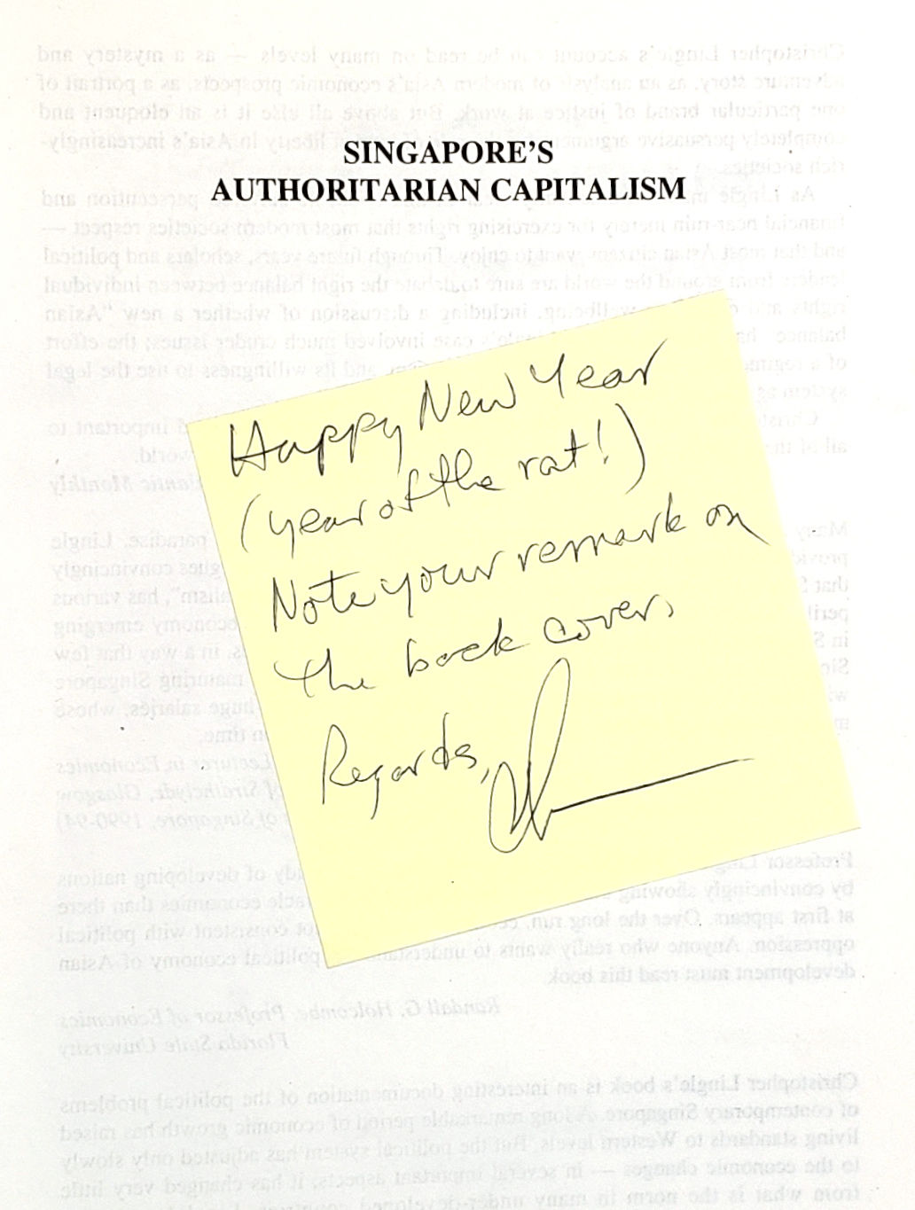 Singapore's Authoritarian Capitalism: Asian Values, Free Market Illusions, and Political Dependency [Signed to William Safire]