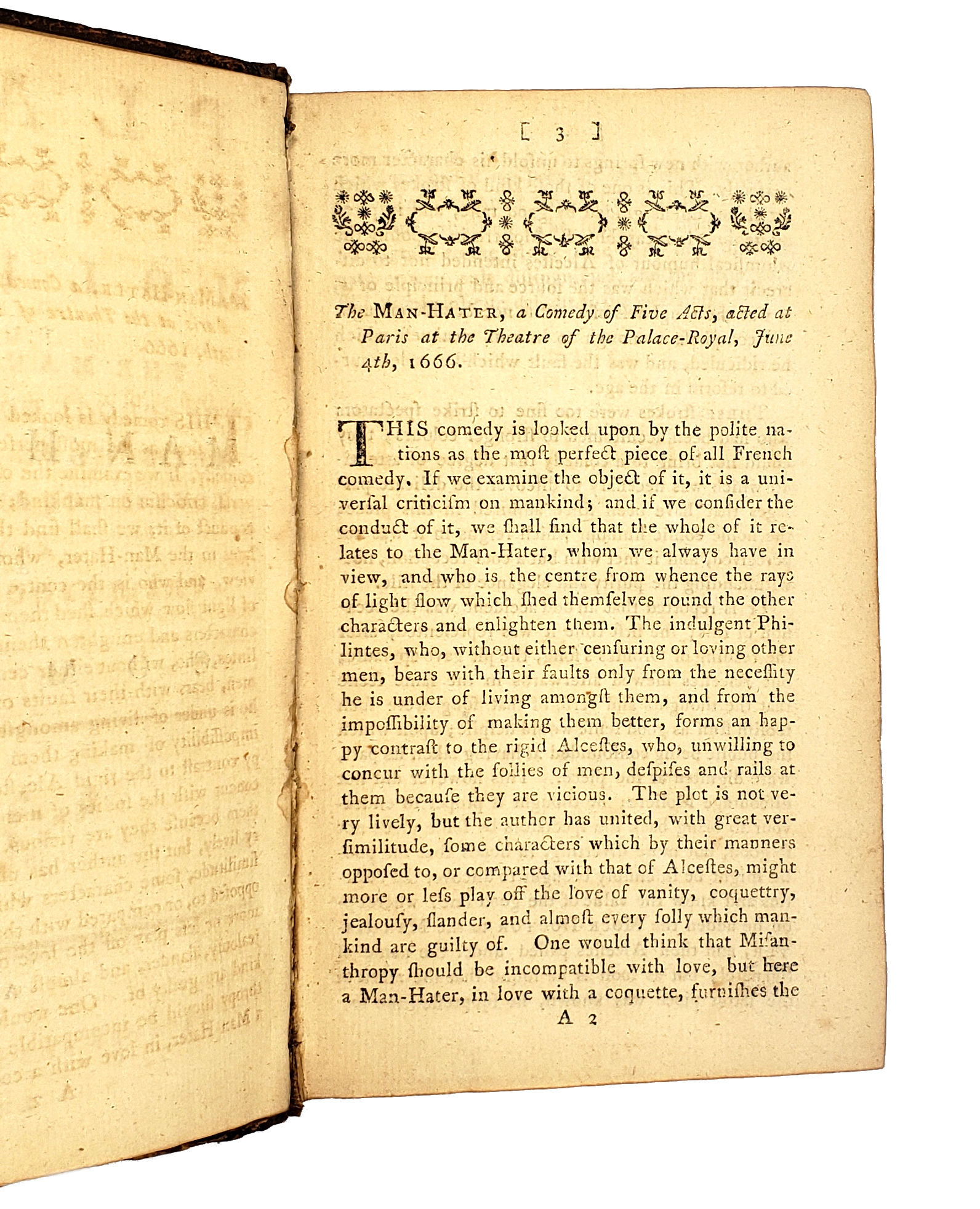 Berwick: R. Taylor, 1771. Hardcover. Very Good. Berwick: R. Taylor, 1771. 16mo (6.75" x 4"); [ii], 68, 51, 74, 34, 87. Rebacked with contemporary calf to front and back boards and original endpapers retained. Corners bumped and worn, with some general scuffing and smudging to leather. Front hinge cracked after "Man-Hater" title page, with leaf separating from gutter along top 2", but binding is holding soundly. Pages a bit toned with occasional faint corner creases, else unmarked.