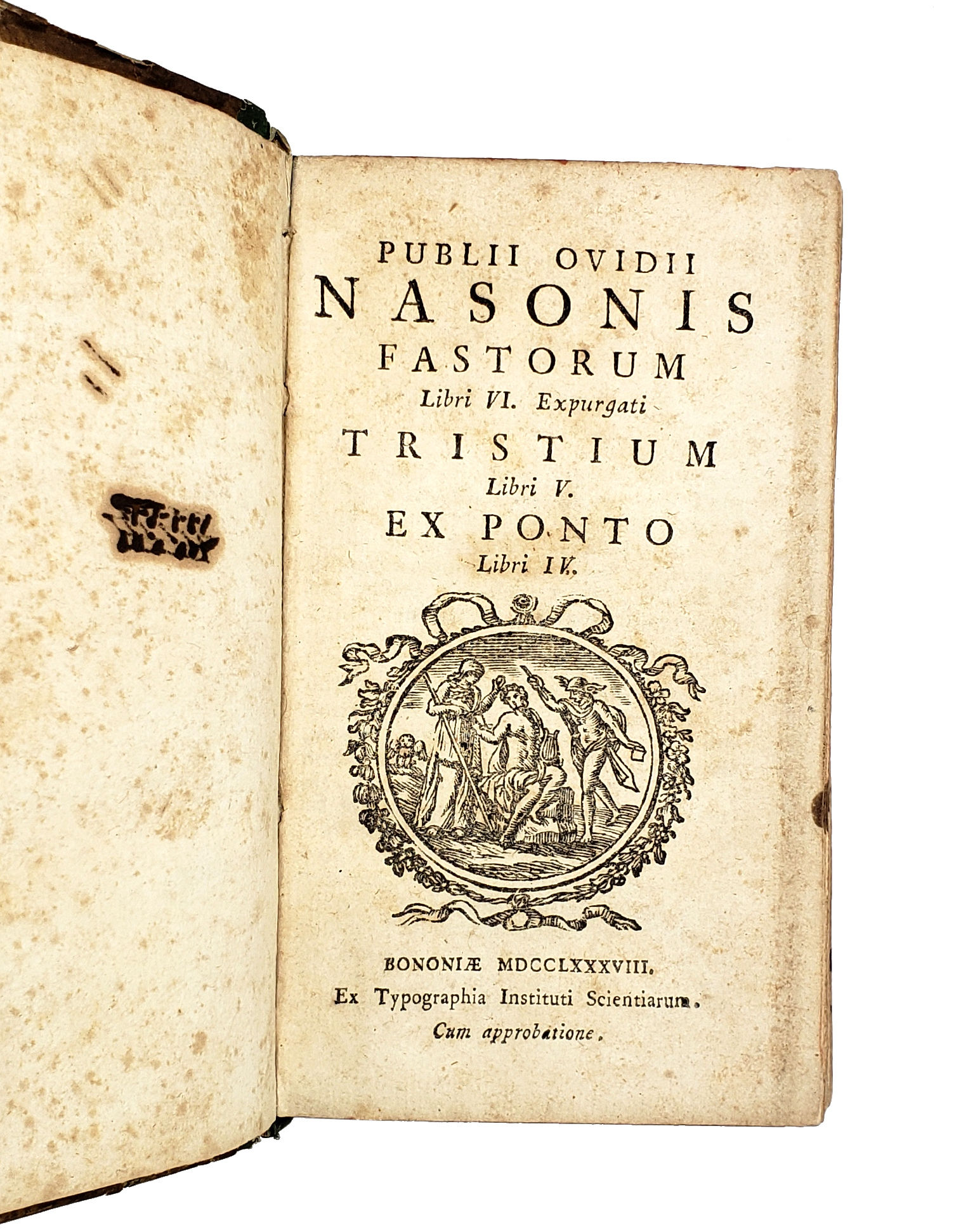 Three volumes in one, this volume only from an apparent larger set. Collects an expurgated version of Ovid's Fasti along with Tristia and Epistulæ ex Ponto.