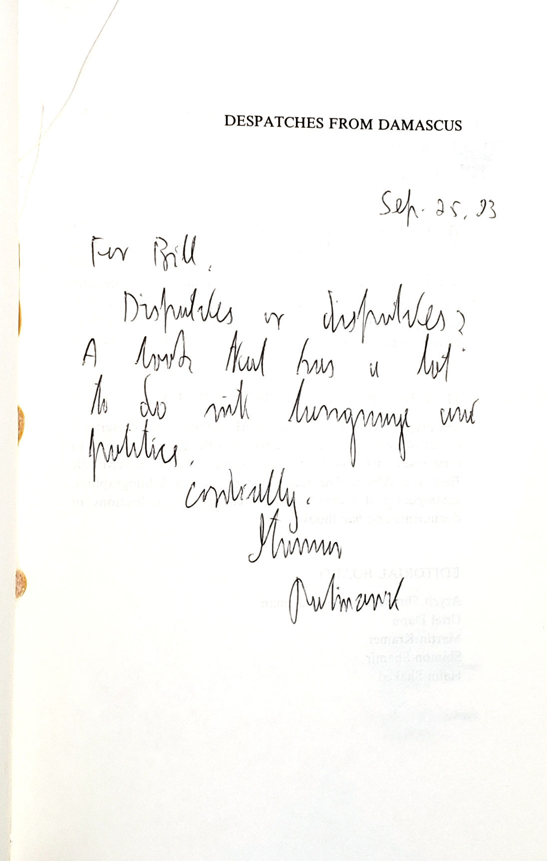 Tel Aviv: The Dayan Center for Middle Eastern and African Studies, 1985. Very Good. Tel Aviv: The Dayan Center for Middle Eastern and African Studies, 1985. First Edition. Signed by co-author Rabinovich on half title to journalist William Safire with inscription "Sep 25, 93 - For Bill, Despatches or dispatches? A book that has a lot to do with language and politics. Cordially, Itamar Rabinovich."