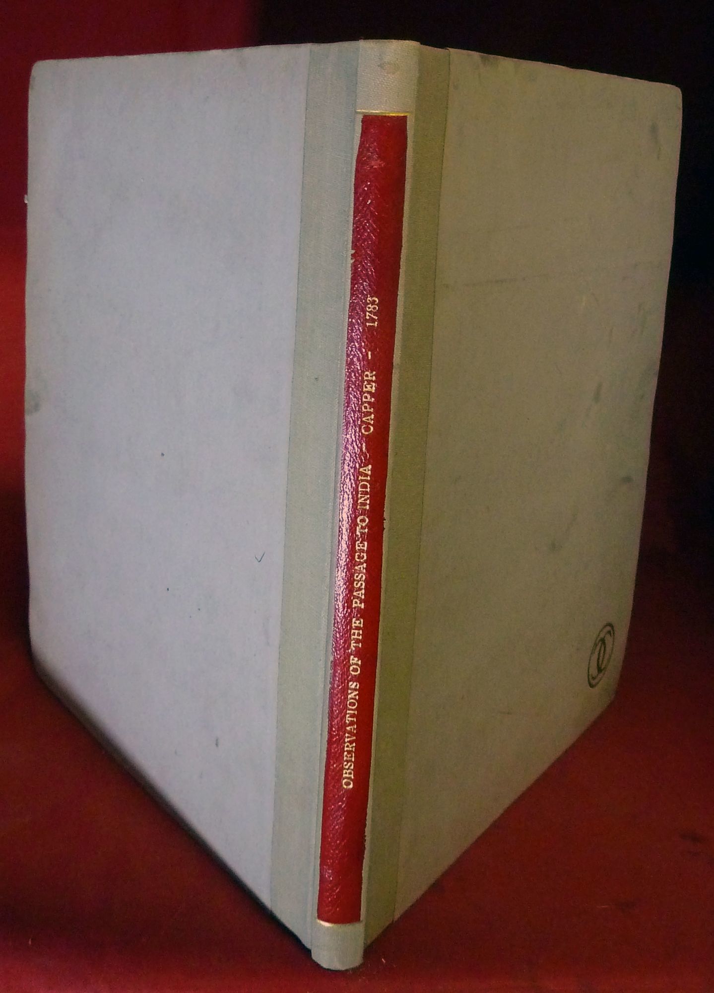 London: W. Faden, 1783. First edition. Hardcover. Untrimmed in modern cloth-backed boards, red leather spine label printed in gilt. Very good. [XX] 110 pages. 27.5 x 22.5 cm. 2 folding engraved maps of Egypt and Syria/Iraq. This work by Capper is in two parts; one describing the route from India by way of the Red Sea, Suez and Egypt, the other from England by way of Aleppo and Mesopotamia and down through the Persian Gulf to Muscat. Provenance: Capper, the East India Company's commissary-general on the coast of Coromandel, was sent home with dispatches in 1777, traveling via Ceylon and Suez. When he arrived in England, he was asked "to explore the feasibility of opening a new channel for transmitting intelligence between Europe and India" (ODNB). BLACKKMER 282. Sir Clive Milnes Coates (1879-1971) ownership inscription on free front endpaper, embossed monogram book label, gilt monogram to lower cover; with the London bookseller Stanley Crowe (pencil note on free front endpaper). Binding lightly rubbed.