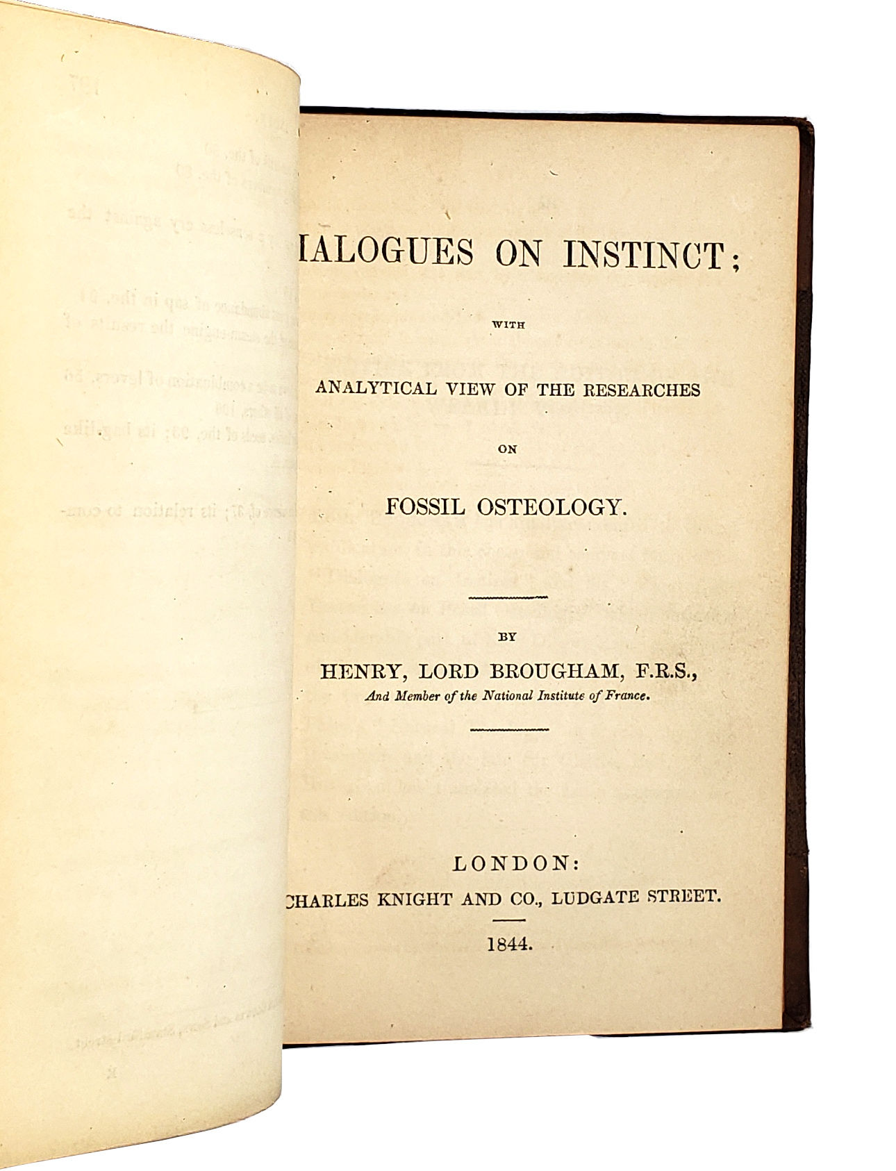 Two Discourses of the Objects, Pleasures, and Advantages, I. Of Science: II. Of Political Science, bound with Dialogues on Instinct; with Analytical View of the Researches of Fossil Osteology