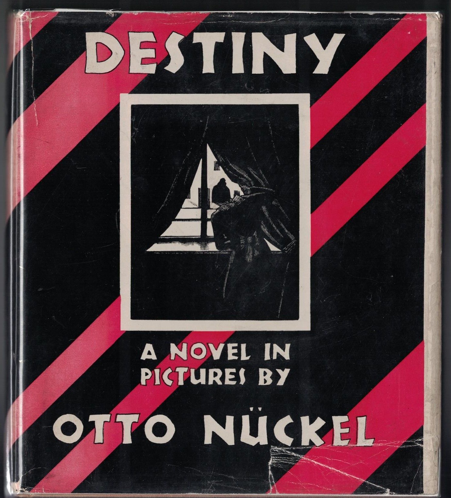 New York: Farrar & Rinehart, Inc, 1930. First American Edition. Hardcover. Very good/very good. Square octavo [20 cm] in once-red cloth faded to orange, with titles and cover illustration in black. Very light wear to boards; rubbing and short, creased tears to jacket, along with longer tear measuring 2" to jacket front cover; light smudging to textblock foot, else interior is unmarked. Nückel's classic story, told entirely through a collection of striking images, inspired the work of Lynd Ward.