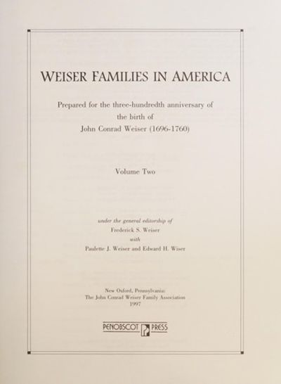 Weiser families in America: Prepared for the three-hundredth anniversary of the birth of John Conrad Weiser (1696-1760)