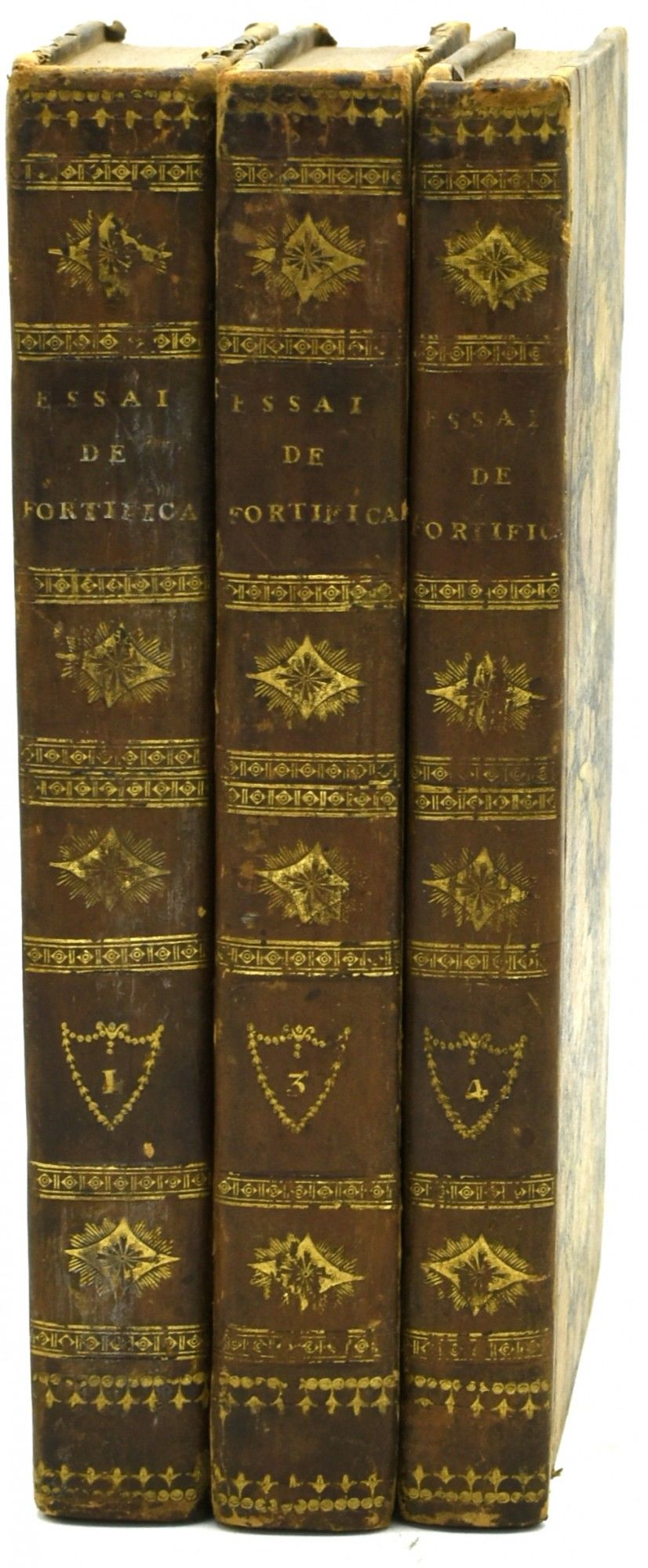 ESSAI GENERAL DE FORTIFICATION, ET D'ATTAQUE ET DEFENSE DES PLACES, DANS LEQUEL CES DEUX SCIENCES SONT EXPLIQUEES ET MISES L'UNE PAR L'AUTRE A LA PORTEE DE TOUT LE MONDE. TOME PREMIER, TROISIEME ET QUATRIEME. DES TENTATIVES A FAIRE POUR PERFECTIONNER L'ART DE FORTIFIER LES PLACES, ET QUELQUES IDEES SUR LE RELIEF ET LE COMMANDEMENT DES FORTIFICATIONS; POUR SERVIR DE COMPLEMENT ET DE SUITE A L'ESSAI GENERAL DE FORTIFICATION ET D'ATTAQUE ET DEFENSE DES PLACES. (THREE VOLUMES, VOL. I, III, & IV ONLY, OF FIVE)