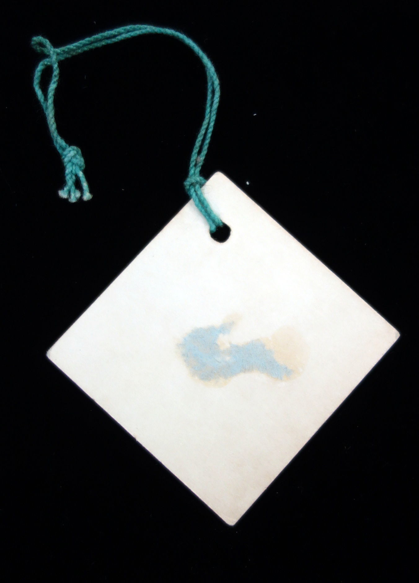 Hanover, NH or Cambridge, MA, 6-May-16. Age toning. Back of item has residue from where it had been pasted into a scrap book.. A small ticket for the sale of tickets to the May 1916 Tennis tournament between the men's tennis team of Harvard and Dartmouth. It is unknown if these matches took place at Dartmouth in Hanover, NH, or at Harvard in Cambridge, MA, however Harvard did win, 8 to 1. This score has been penned onto the ticket. The matches were set to start at 1:30, and tickets were 10 cents each. Printed on one side on a stiff board, cut into a small rhombus shape. It has a small hole on the top where a green sting has been threaded through. Measures 2" x 2