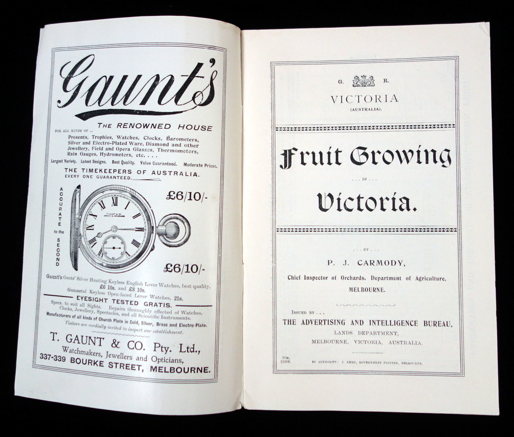 - Melbourne, Victoria, Australia: Advertising and Intelligence Bureau, Lands Department, 1909