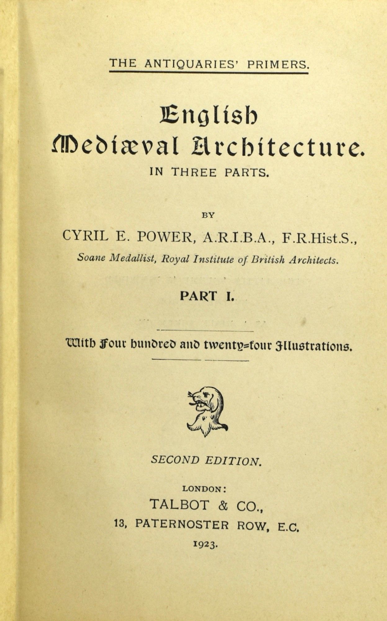London: Talbot & Co, 1923. Hard Cover. Very Good binding. Vol. I and II only, of three. With three architectural plates and one folding chart. With no marks. Green cloth with gilt lettering. Very Good binding.