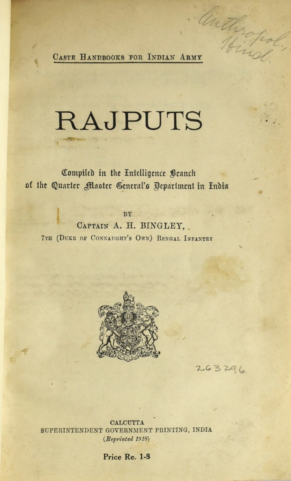 RAJPUTS. CASTE HANDBOOKS FOR INDIAN ARMY. COMPILED IN THE INTELLIGENCE BRANCH OF THE QUARTER MASTER GENERAL'S DEPARTMENT IN INDIA