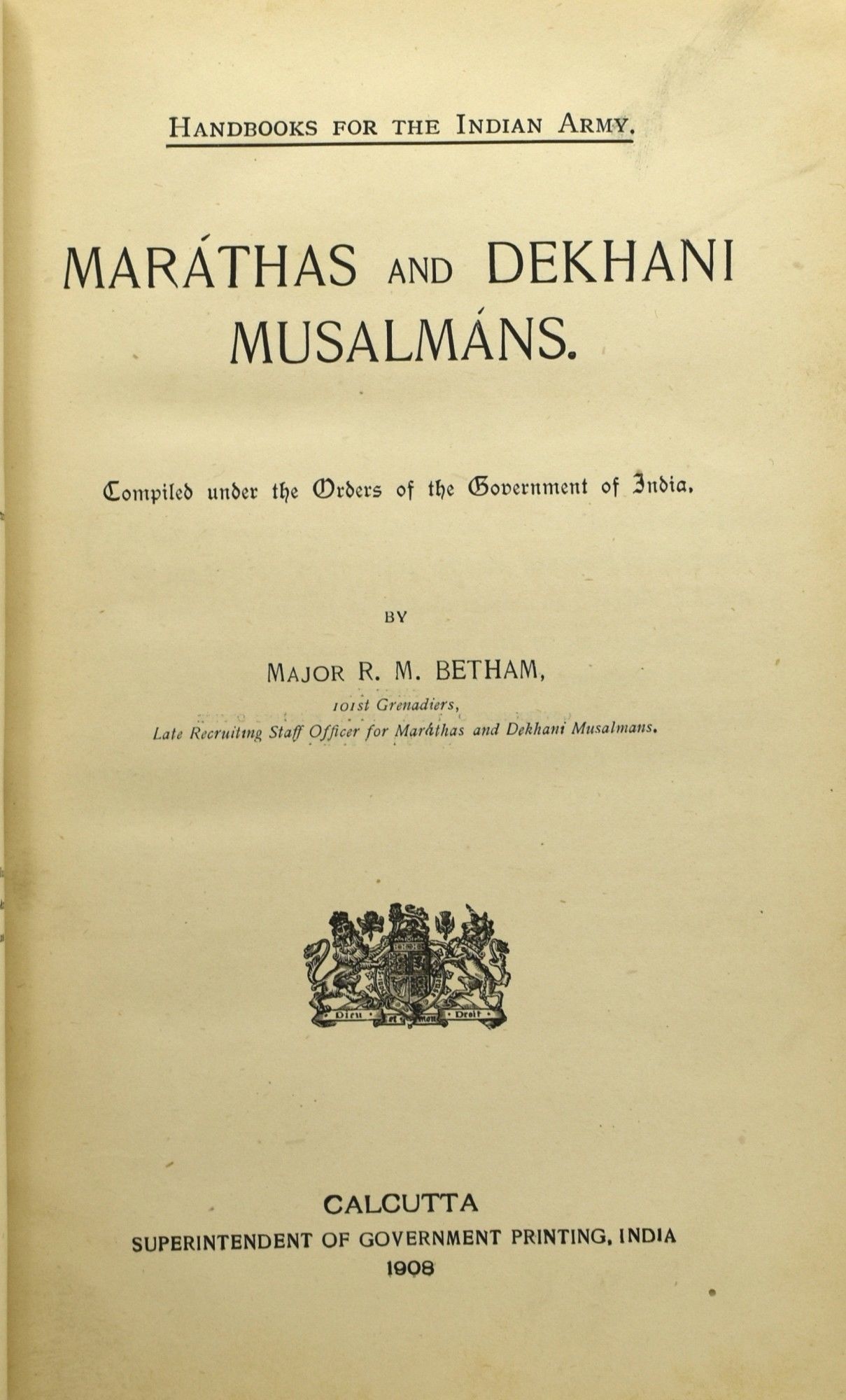 MARATHAS AND DEKHANI MUSALMANS. HANDBOOK FOR THE INDIAN ARMY. COMPILED UNDER THE ORDERS OF THE GOVERNMENT OF INDIA